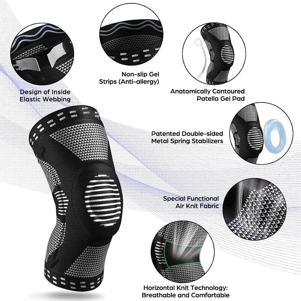 Professional Knee Brace for Pain Relief, 1 Count Knee Cover with Patella Pad & Side Stabilizers, Compression Knee Sleeve for Meniscus Tear, Runner, Workout, Sports Knee Brace, Patellar Knee Brace
