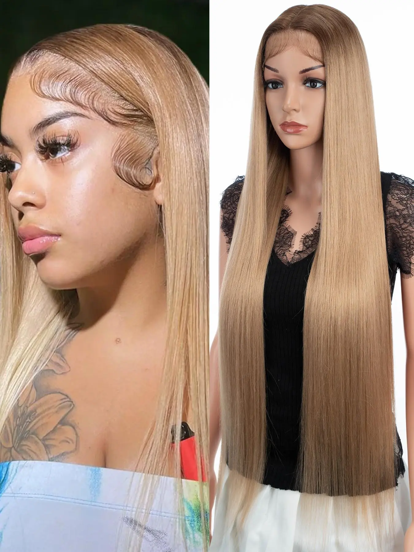 Super Long Straight Wigs with Baby Hair for Women, Gorgeous Fluffy Wigs, Synthetic Lace Front Wigs for Party, Daily Use, Glueless Frontal Wig
