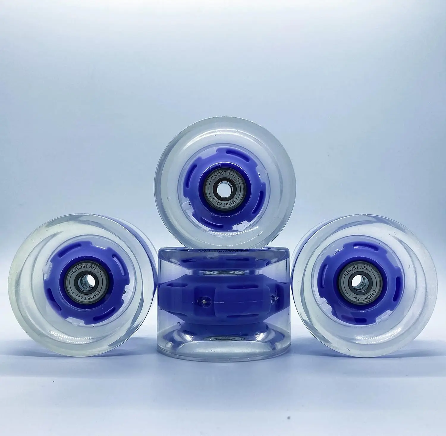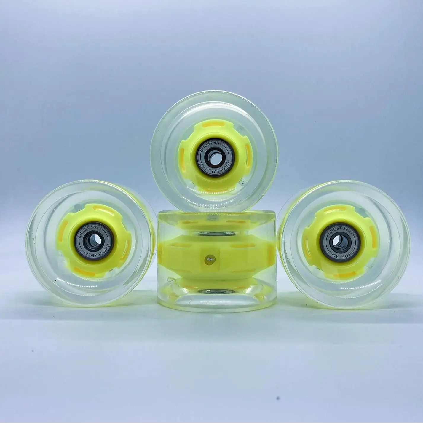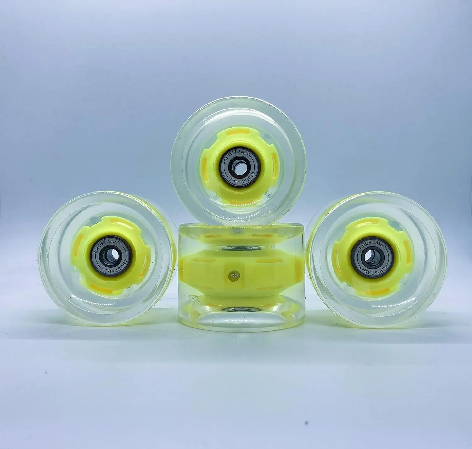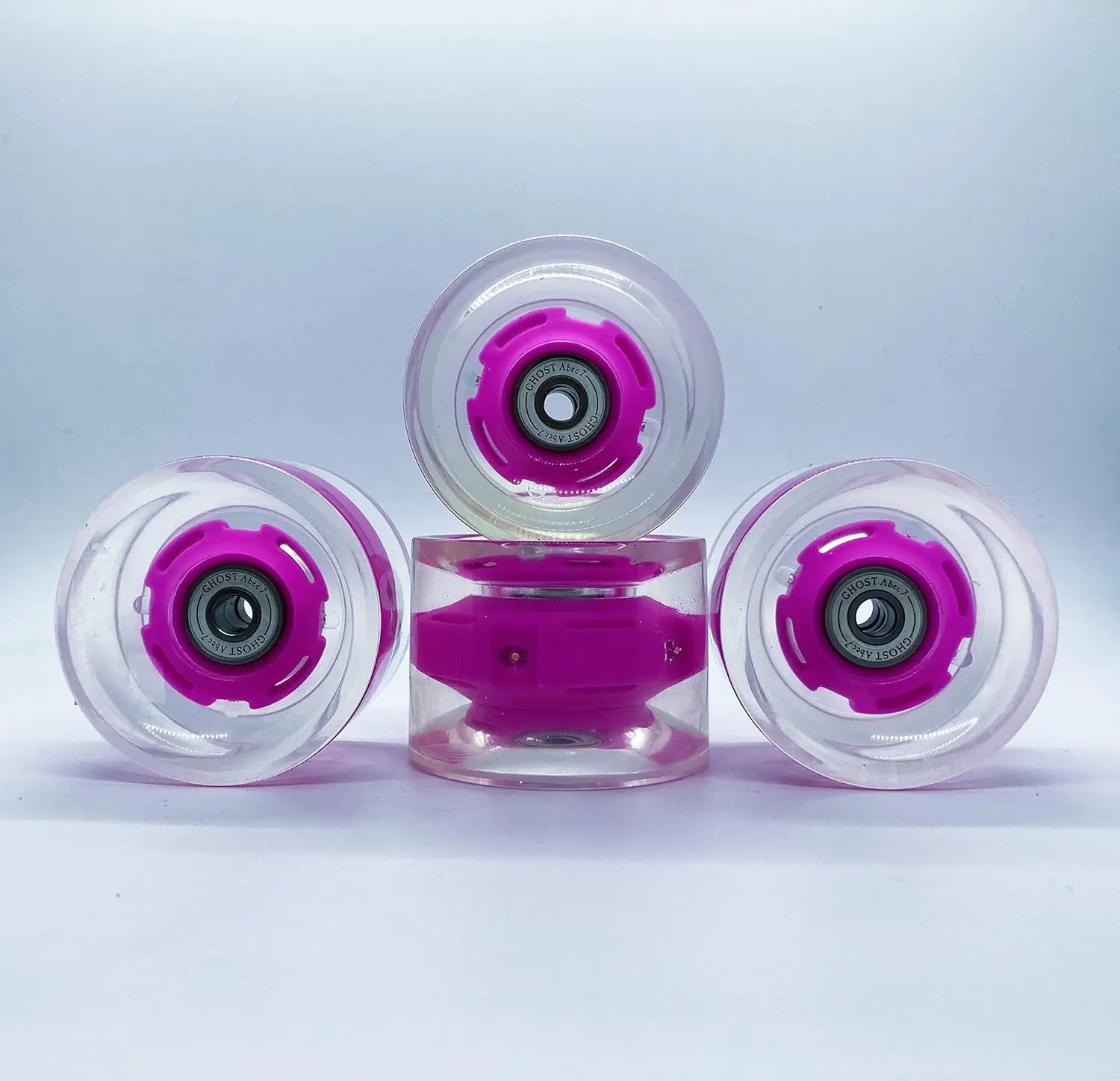 Elevate your skateboarding experience with these see-through wheels that illuminate in vibrant colors from within. A must-have for any skateboard enthusiast looking to stand out on the streets.
