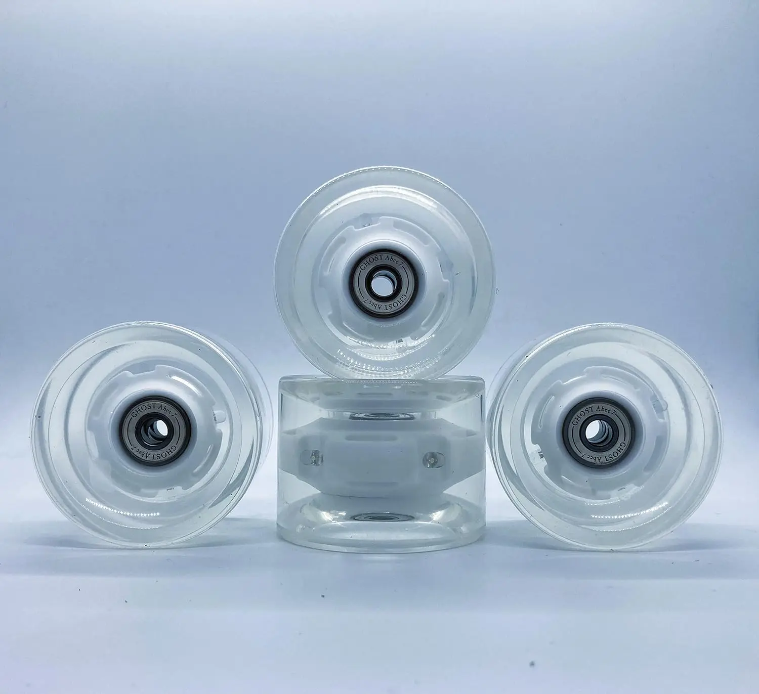 GHOST BOARDS 70MM 78A Ghost LED Longboard Wheels, Watch them Light Up and Glow! ABEC-7 Ghost Bearings. See Through Light Up Wheels.