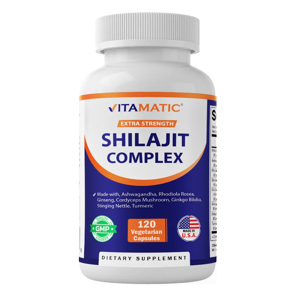 Extra Strength Formula – Shilajit 30:1 Extract blended with Ashwagandha, Rhodiola Rosea, Ginseng, Cordyceps Mushroom, Ginkgo Biloba, Stinging Nettle, and Turmeric for powerful support.