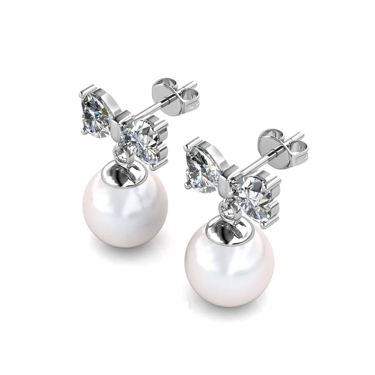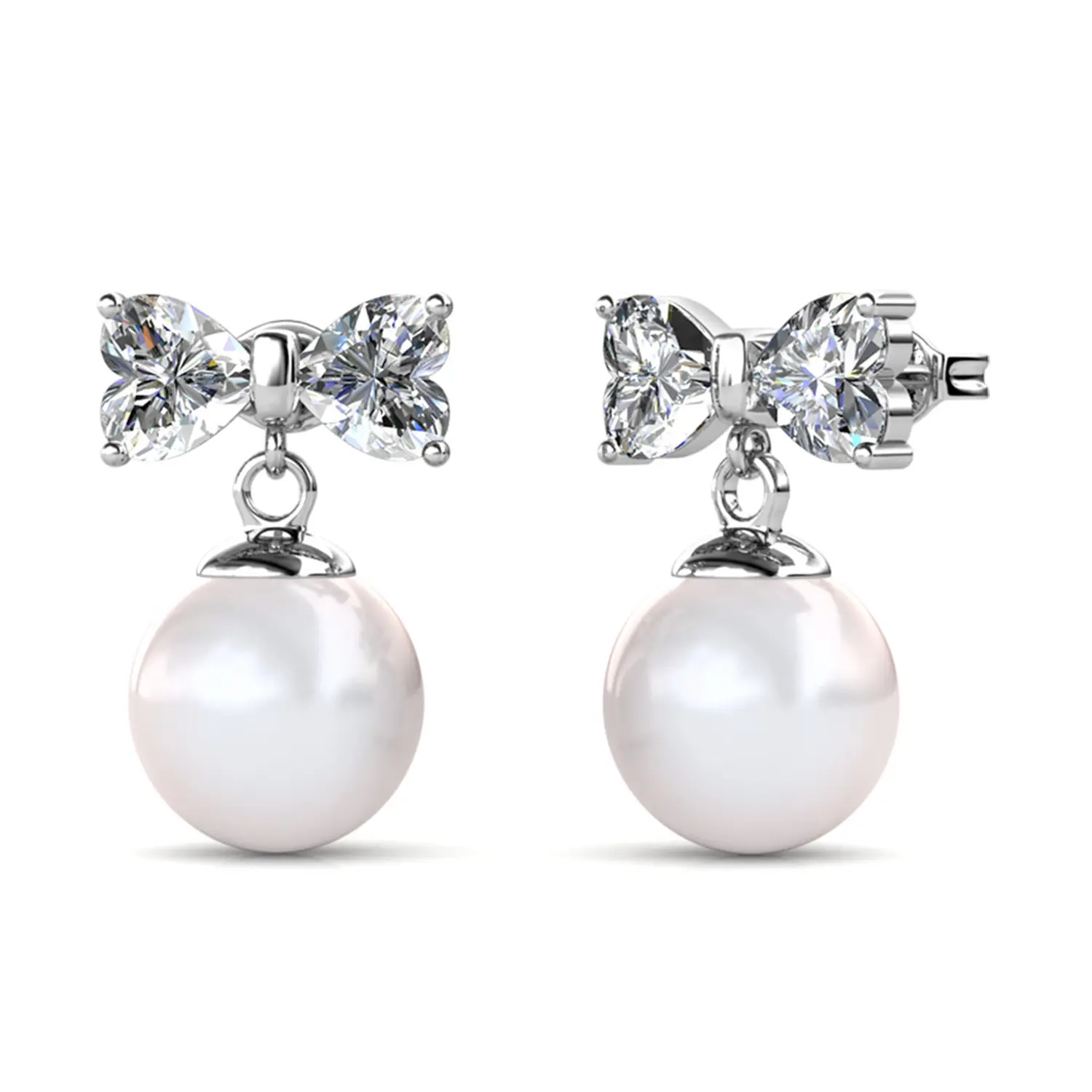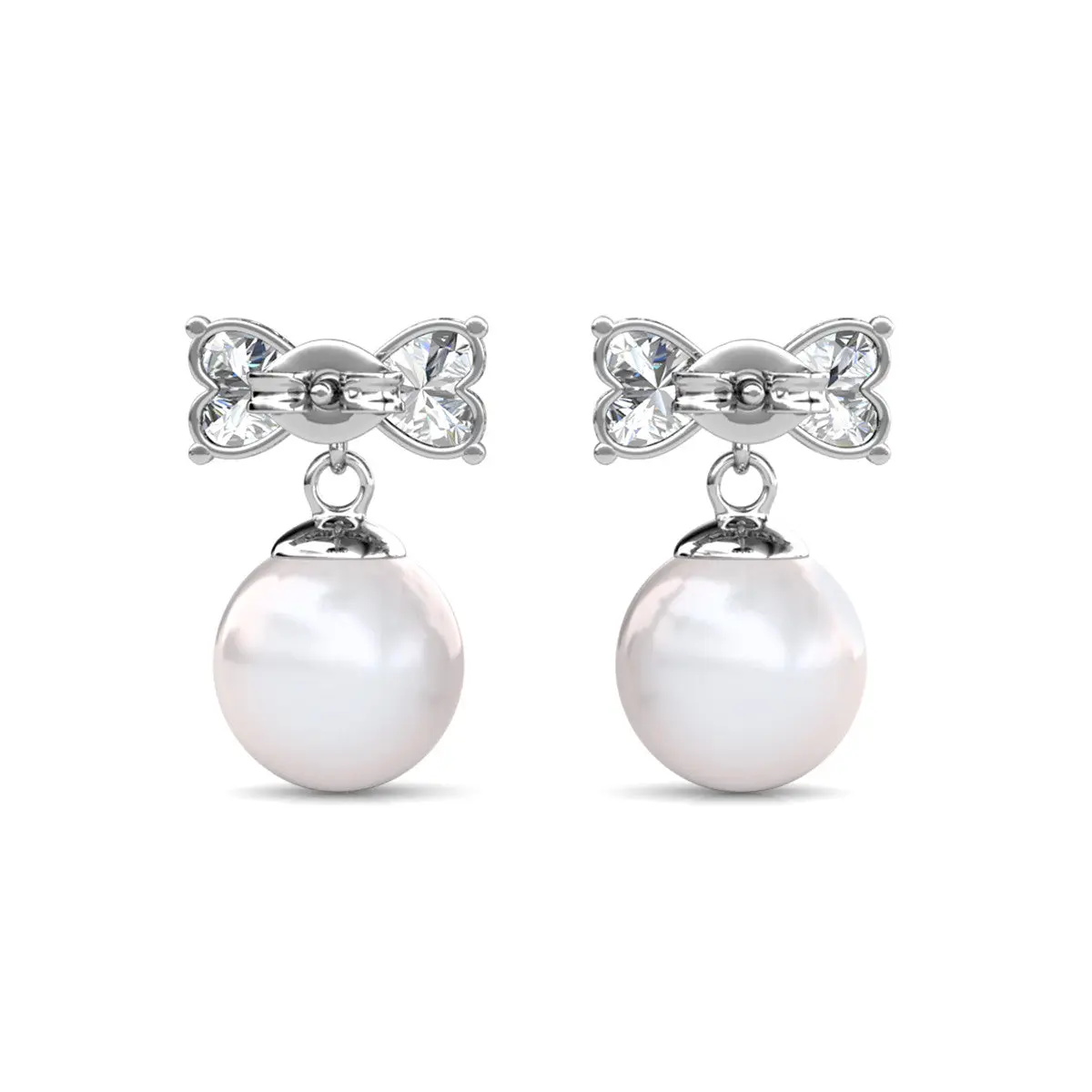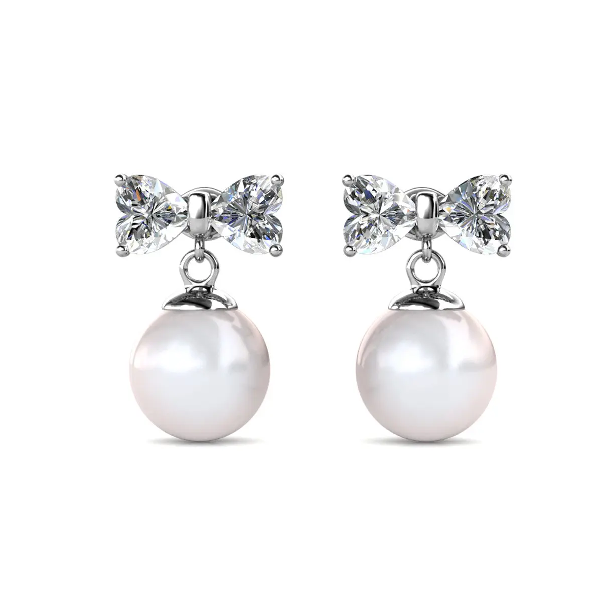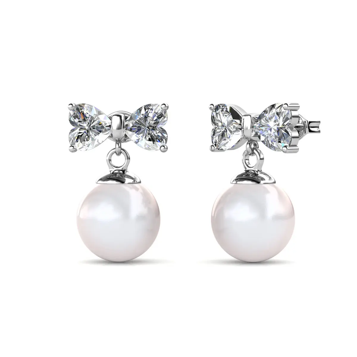 Oakley 18k White Gold Plated Silver Drop Pearl Earrings with Simulated Diamond Crystals