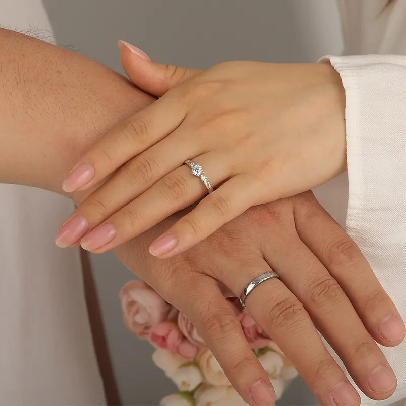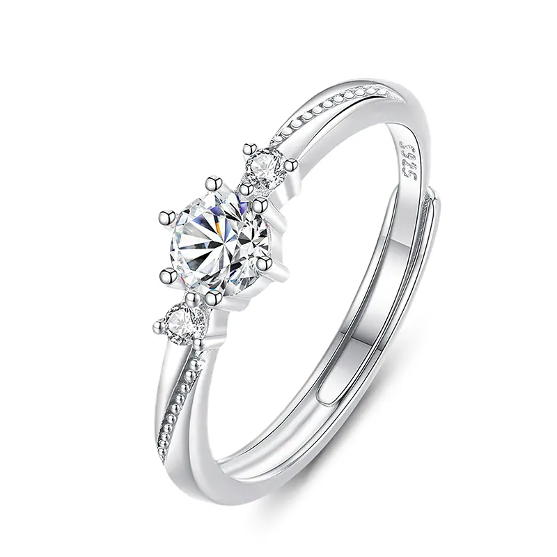 This adjustable sterling silver ring for women features three-stone design. Adorned with delicate white stones, it elevates your elegance. This beautiful ring embodies the essence of femininity and grace, adding a touch of sparkle to your every move.The adjustable feature ensures the perfect fit, while the delicate arms symbolize beauty and sophistication.Let this ring be a symbol of your unique style, reminding you that beauty is in every detail.