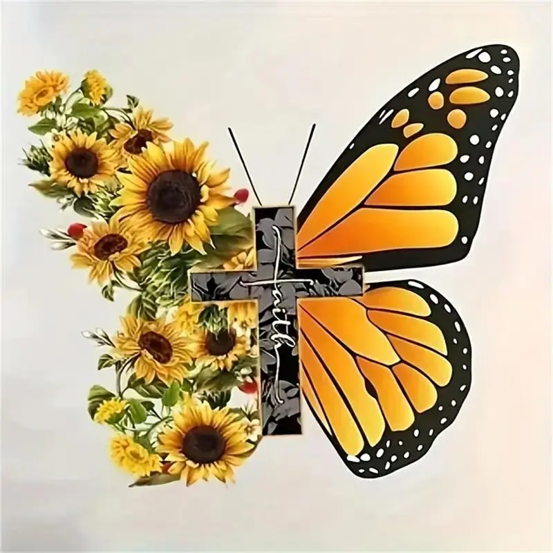 Butterfly & Sunflower Pattern DIY Diamond Arts Colorful Painting Kit without Frame, 1 Set DIY 5D Diamond Arts Painting for Home Bedroom Wall Decor