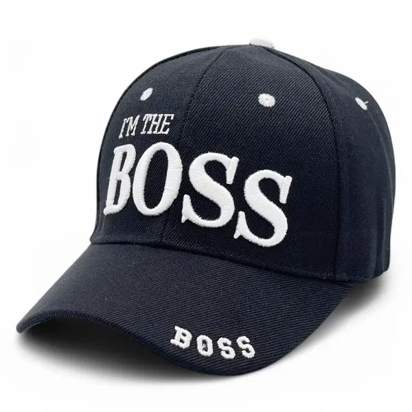 **"I'm The Boss" Embroidered Baseball Cap** Take charge in style with our "I'm The Boss" Unique Embroidered Baseball Cap.