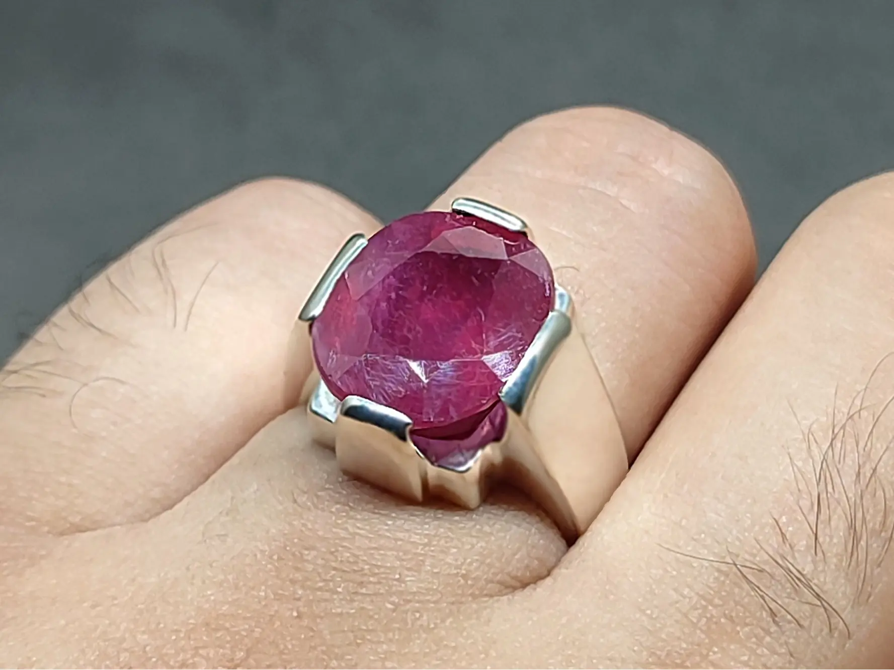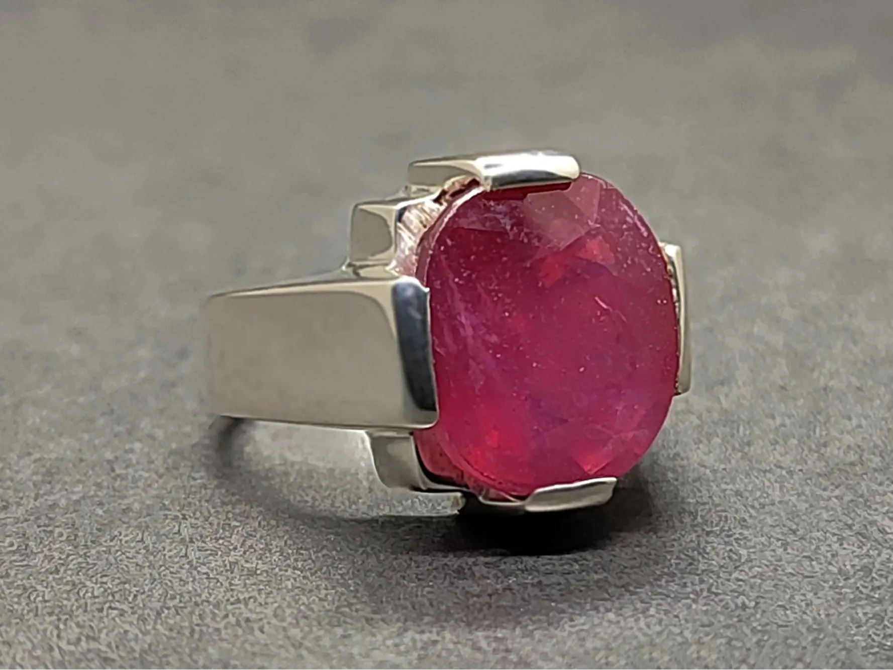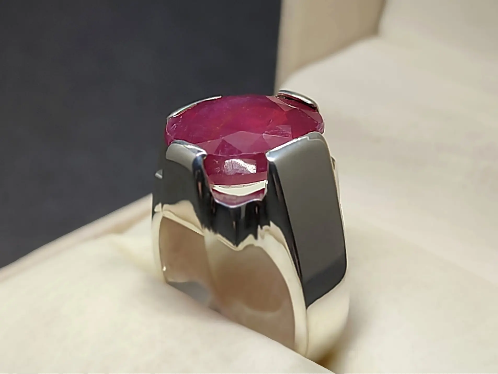 Natural 8.5 Carat Deep Red Ruby Sterling Silver 925 Handmade Yaqoot Mens Plain Ring