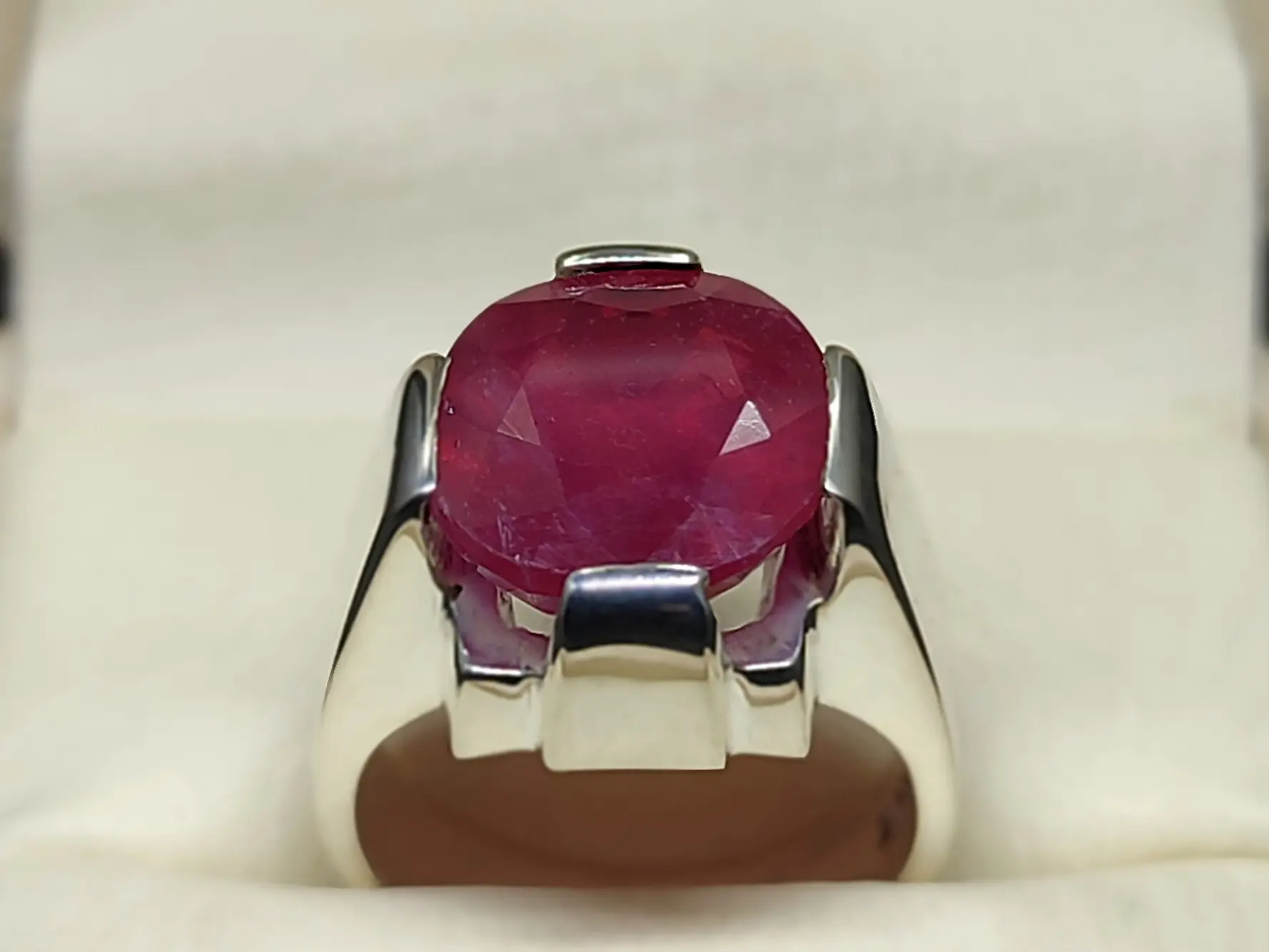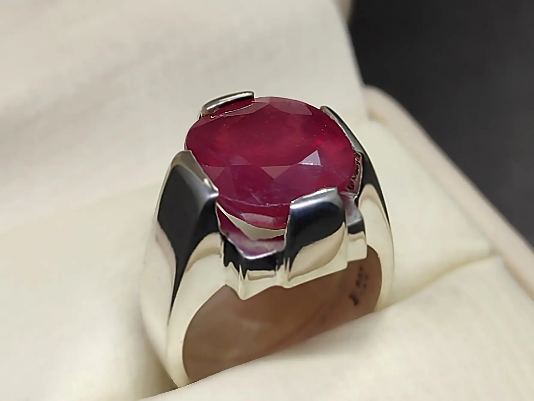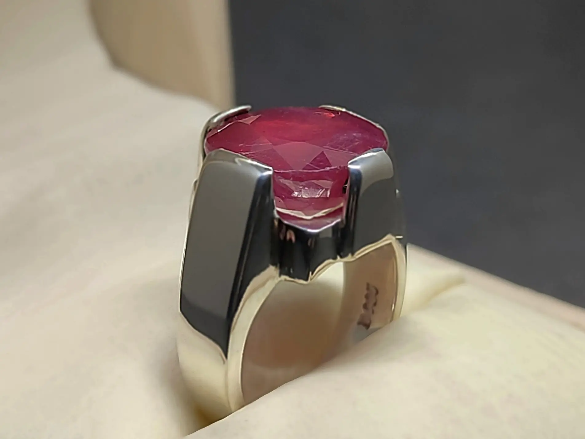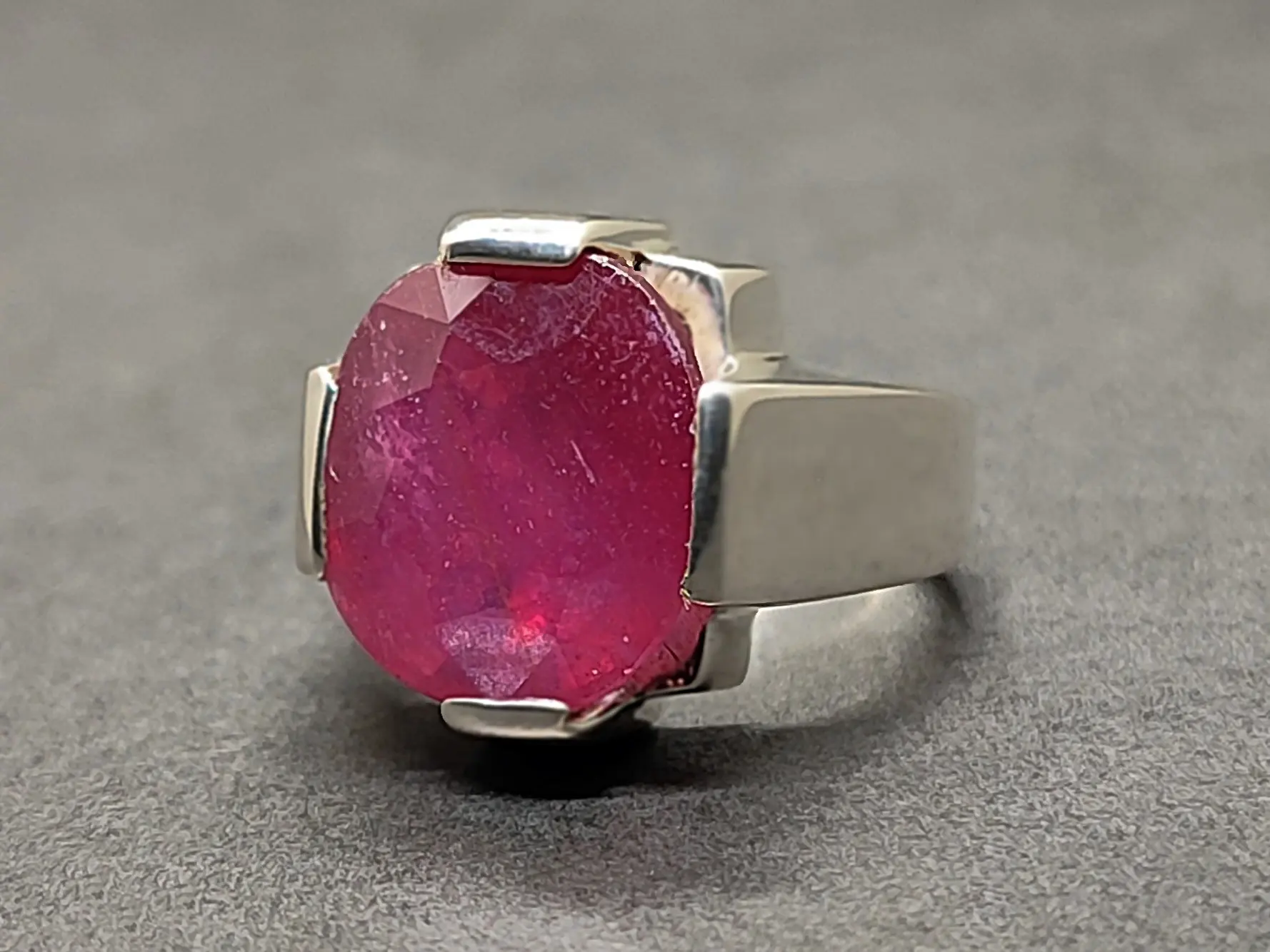 Natural 8.5 Carat Deep Red Ruby Sterling Silver 925 Handmade Yaqoot Mens Plain Ring