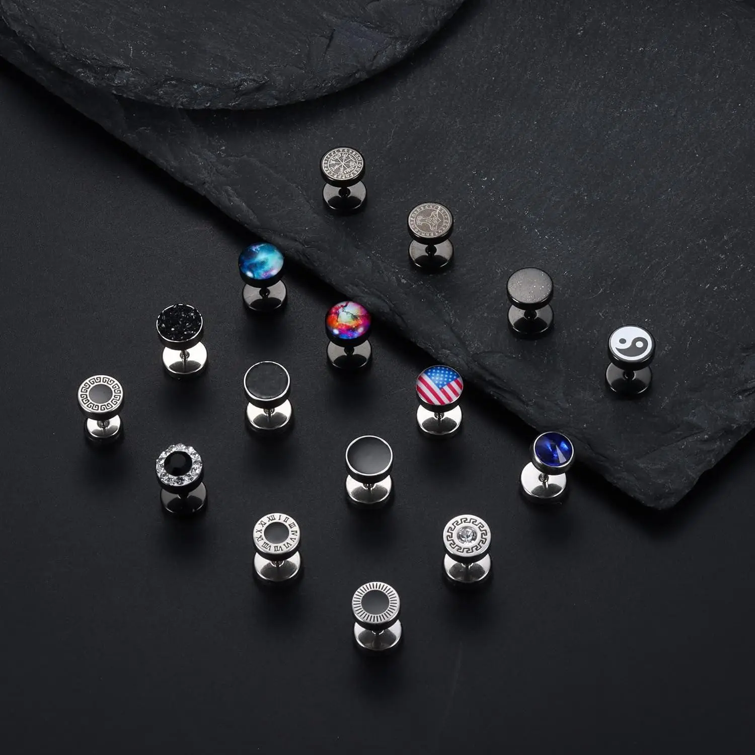 FINREZIO 16 Pairs 316L Stainless Steel Fake Gauges Earrings for Men Women Barbell Stud Earrings Mixed Color Cheater Fake Ear Plugs Faux Gauges Earrings Ear Tunnel Daily