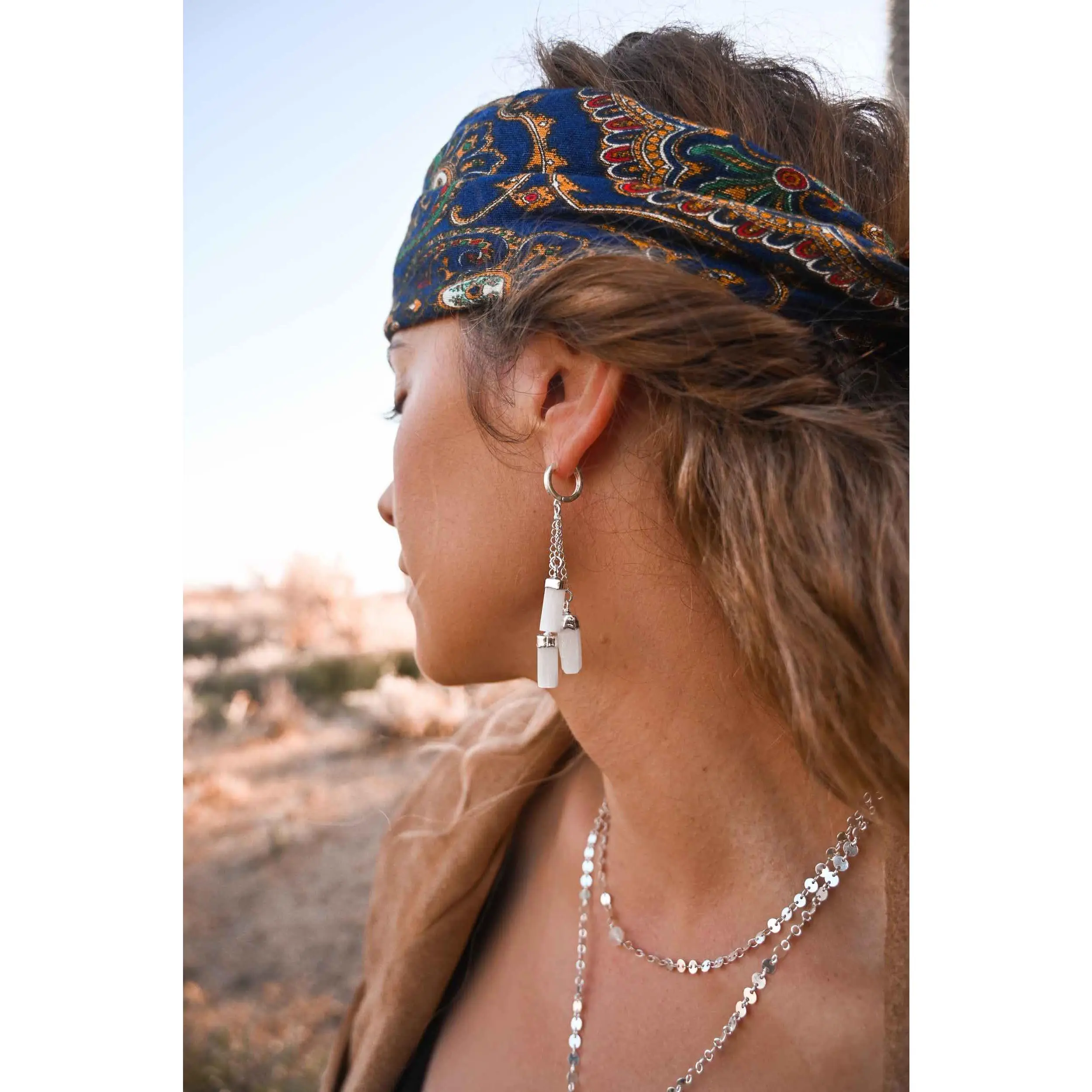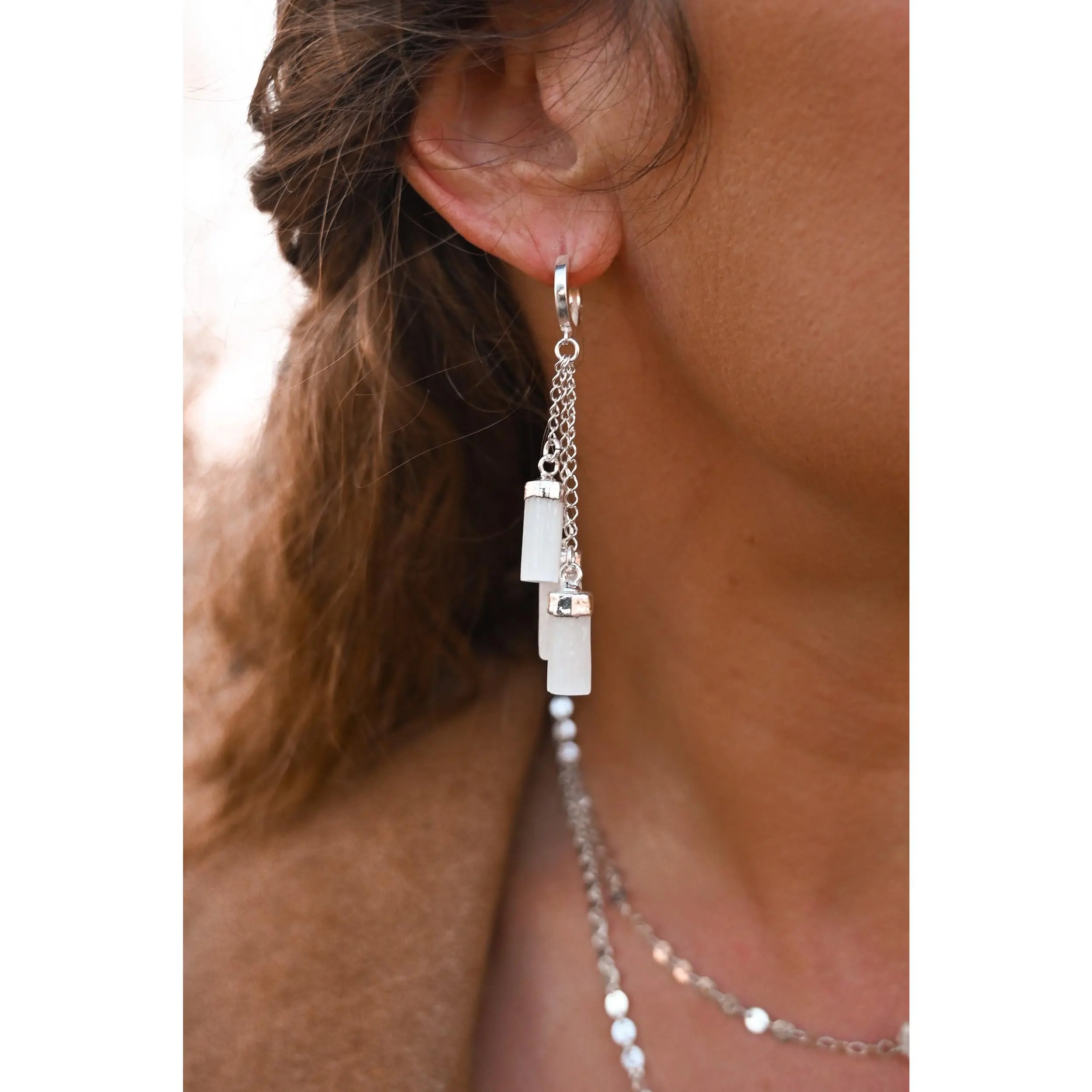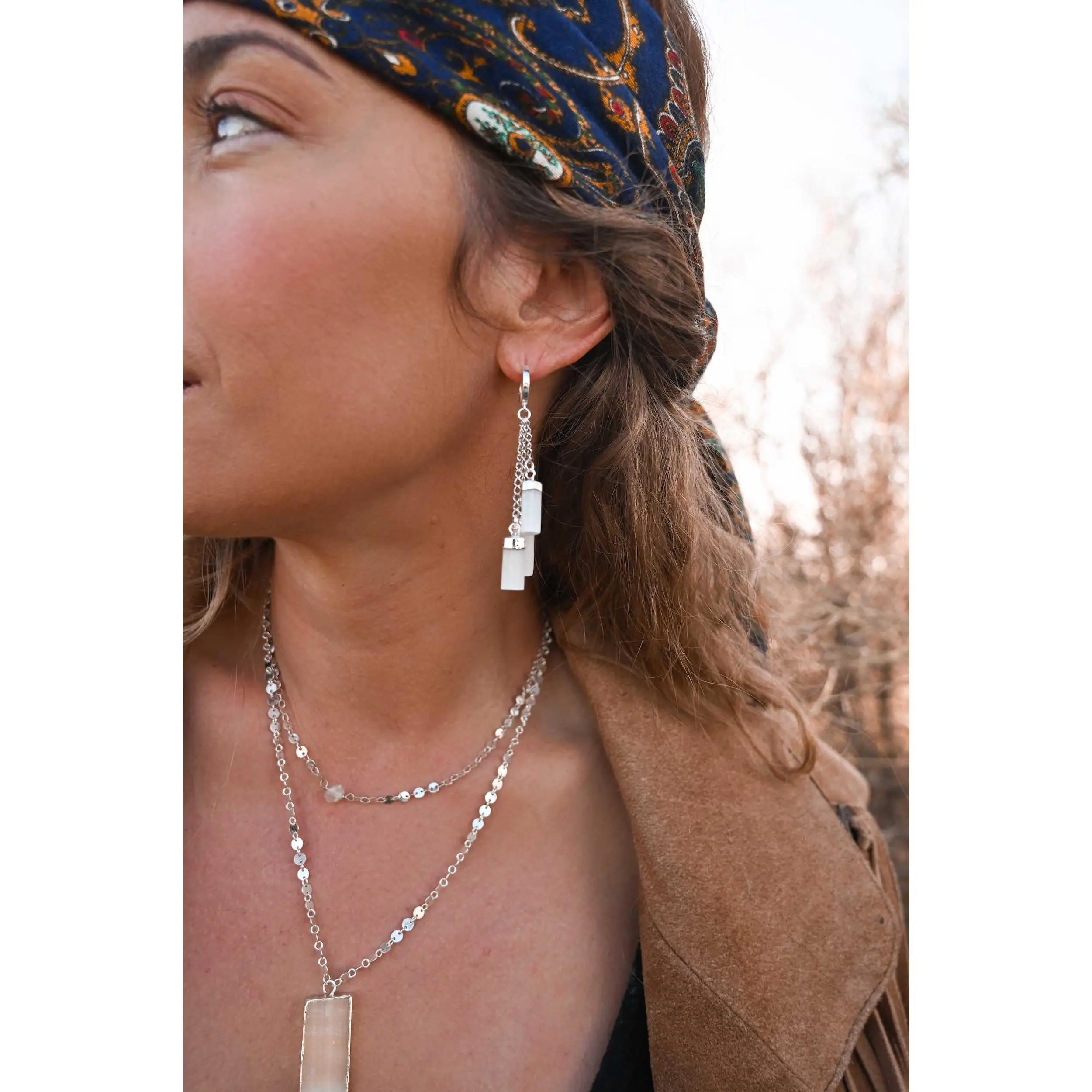Our Selenite Self Talk earrings are one of our most loved so I decided to make selenite in silver. I love how this trio of Selenite softly dangles from your ear, still making a statement. You can wear these with seriously any outfit and come out feeling like the cool girl spiritual gangster you are!