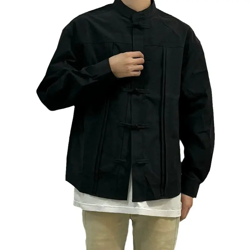 Chinese-Style Men's Wear, Mandarin Collar Tang Suit Shirt for Men, Long-Sleeved Autumn Premium Design with a Roguish Charm Top