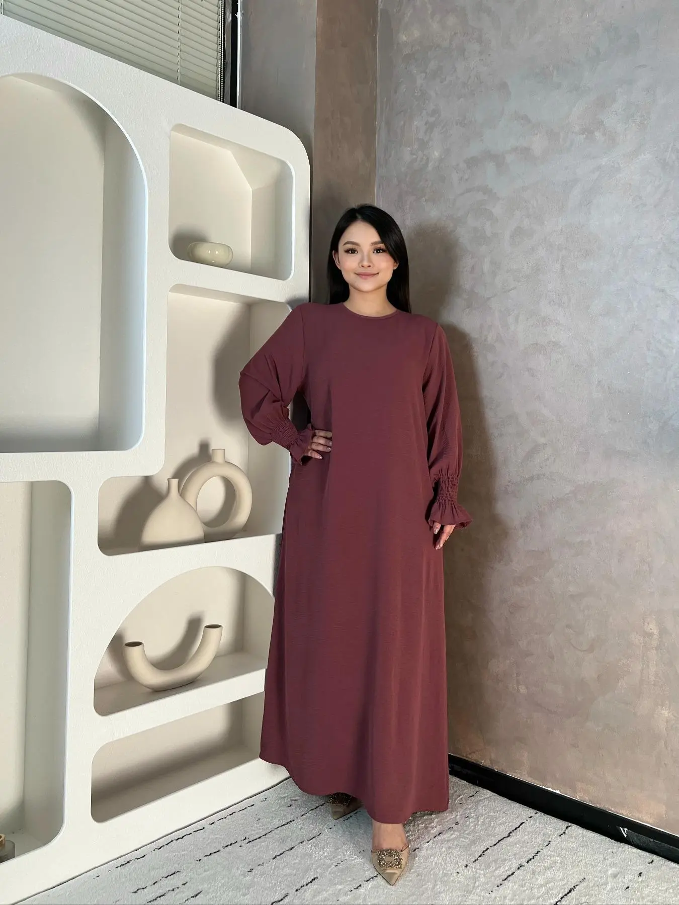 Beautiful color as it shows on the picture the material is good quality nice for everyday wear will get more