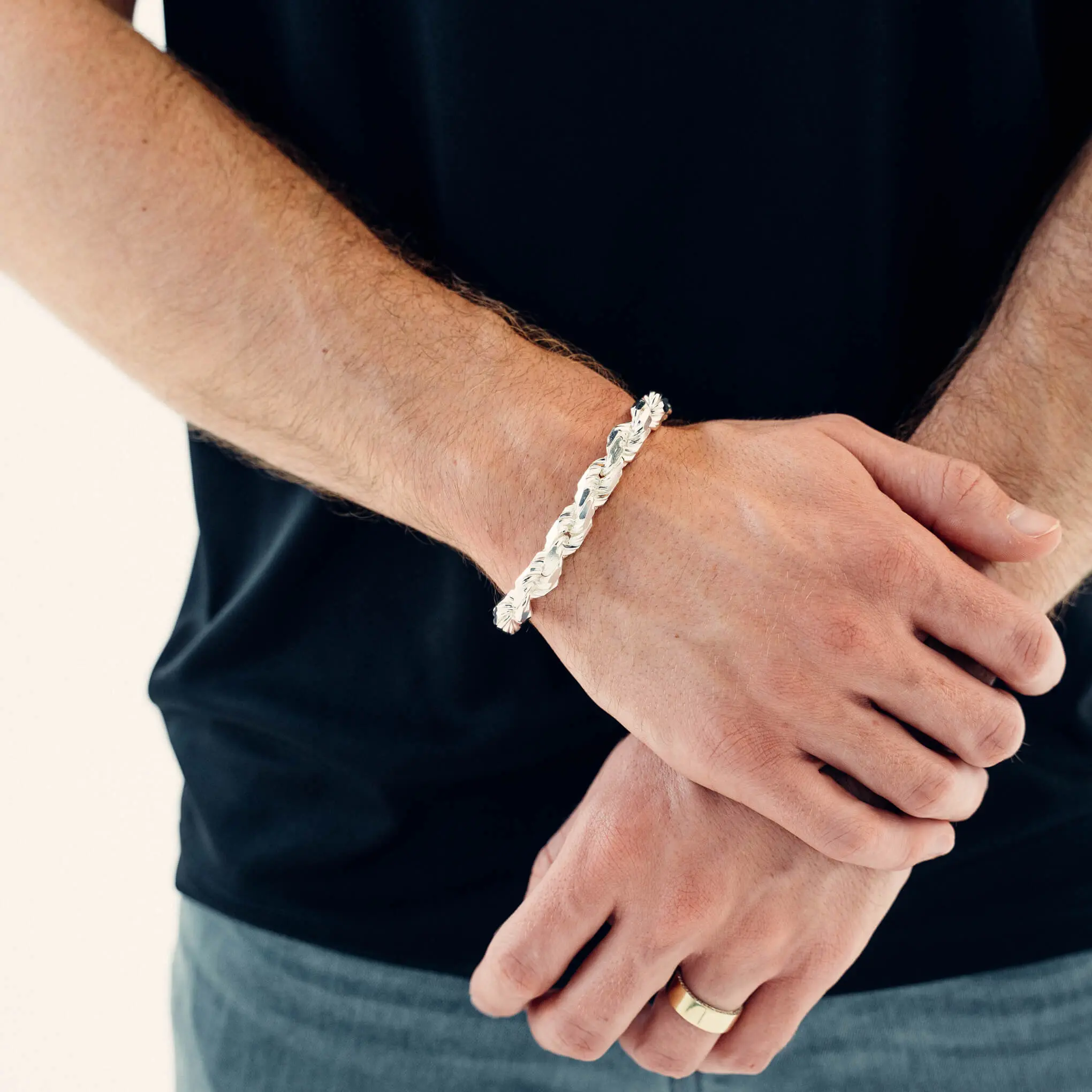 Make a bold statement with our chic Silver Diamond Cut Rope Bracelets. Created for the fashionable man or woman, these 925 sterling silver bracelets are guaranteed to become one of your favorite wardrobe pieces. Crafted in Italy, each bracelet is made from the finest sterling silver available, ensuring you only receive the best in quality and purity. Choose to bring subtle shine and sophistication to your ensemble by wearing them on their own, or stack multiple together to make a breathtakingly gorgeous piece. The natural high polish finish produces a glistening white color that truly brings out the brilliant diamond cutting around each bracelet. These bracelets promise to become staples in any style you choose!