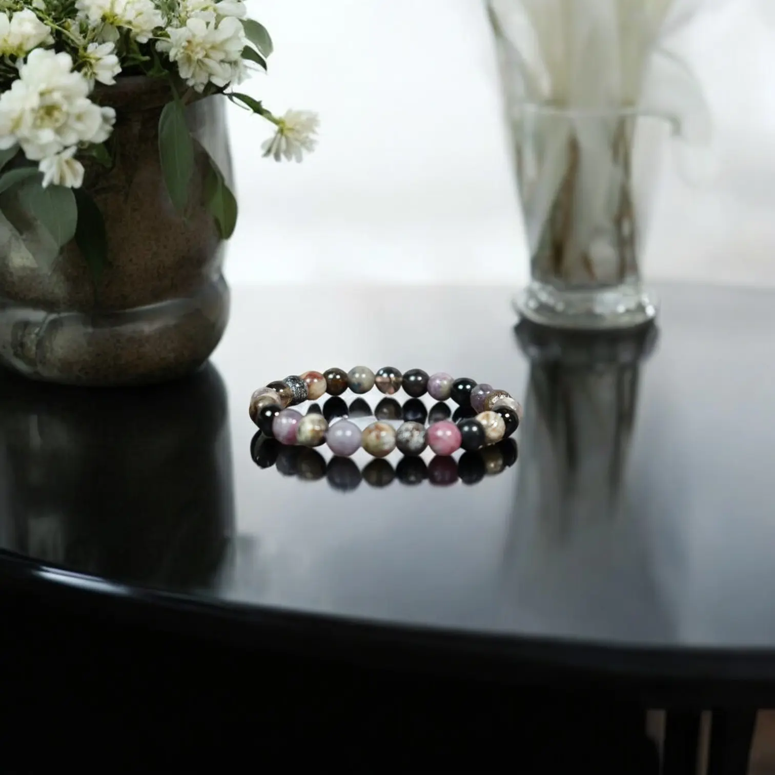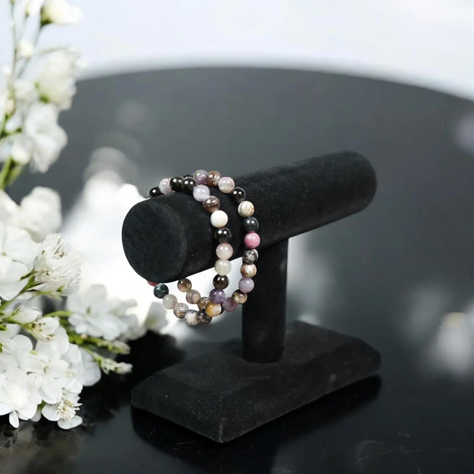 Designed to fit most wrist sizes, this bracelet features 8mm beads strung on a strong elastic cord. The adjustable design ensures comfort and a secure fit. Ideal for those seeking a versatile accessory that complements various outfits.
