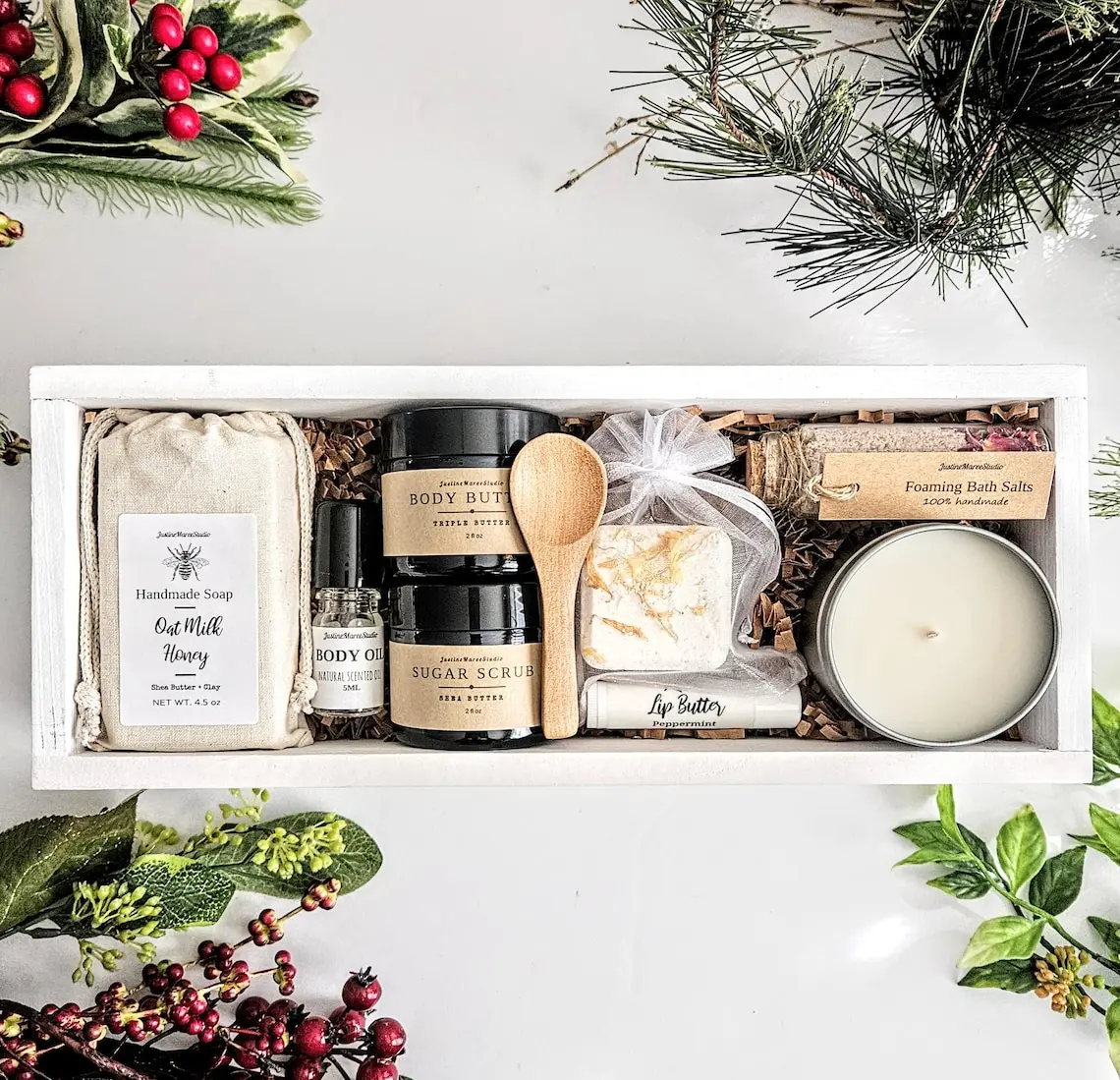 🫧Large Beautiful Spa Gift Set! - solid wood box holding Handcrafted premium bath body products!