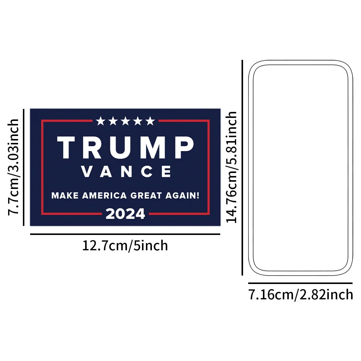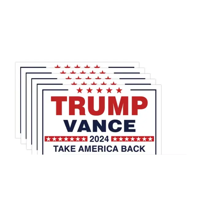 This 10-pack of Trump Vance 2024 stickers, each measuring 12.7x7.7cm (5x3.03 inches), features bold MAGA designs. Made from reflective vinyl, these waterproof stickers are perfect for displaying your support on cars, windows, laptops, and more.