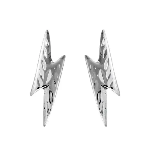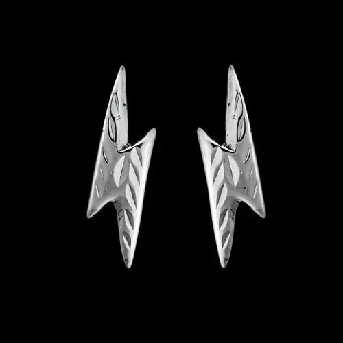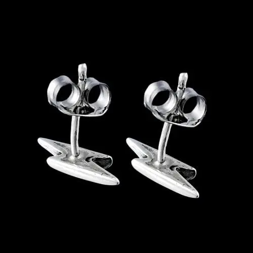 925 sterling silver lightning bolt stud earrings. These earrings measure 1/8 inch wide by 1/2 inch tall. The photos show these earrings with the diamond cut option. It can be ordered with either a high polish shine or diamond cut finish.