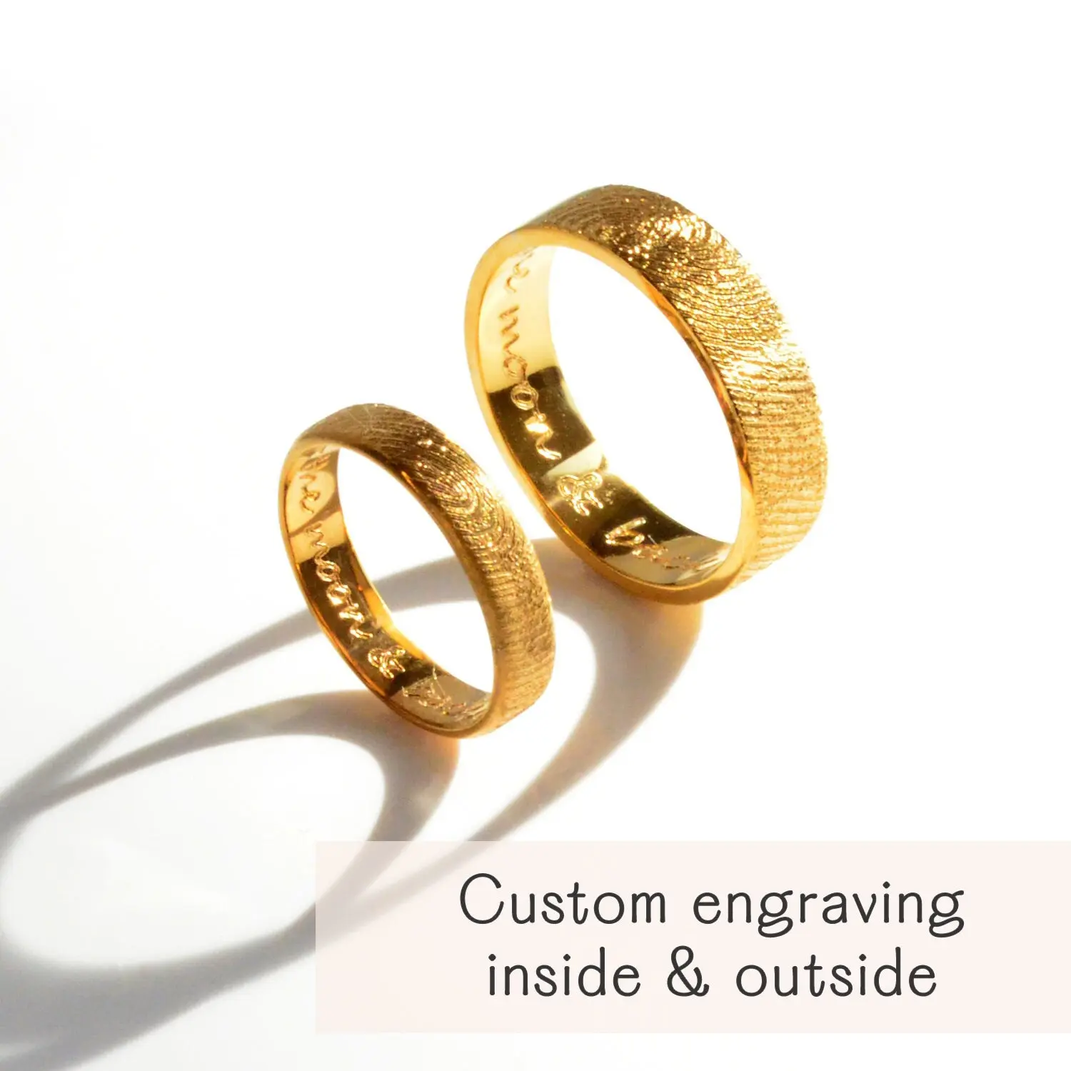 Bought these rings for my mama’s birthday with mine & my sisters’ fingerprints engraved on them… they were so beautiful they made her cry. Incredible shipping time (especially in short notice), AMAZING communication with the seller, I couldn’t have asked for a better experience.