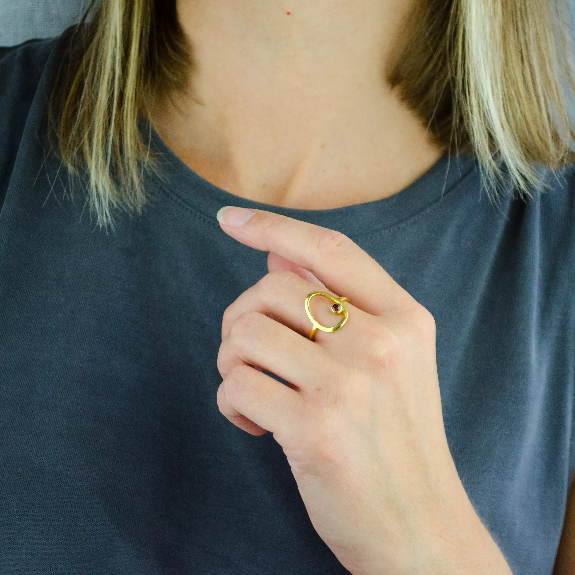 This listing is for our open teardrop oval ring with one 3mm stone. Celebrate a birthday or anniversary with your birthstone set in this beautiful statement piece. This chic, minimalist design is great for wearing everyday and makes a great conversation starter. You'll love these tiny bezel set 3mm birthstones. Available in sterling silver, vermeil gold and rose gold.