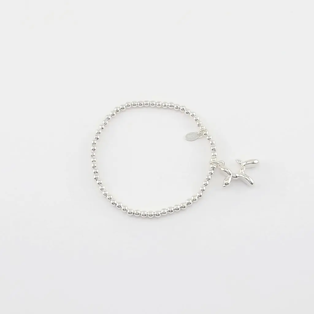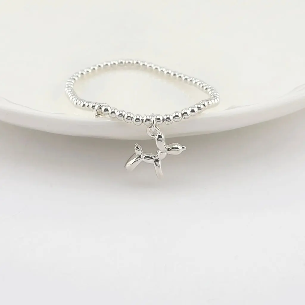 FWJ -925 STERLING SILVER JEWELRY-ELASTIC DOG BALLOON BRACELET