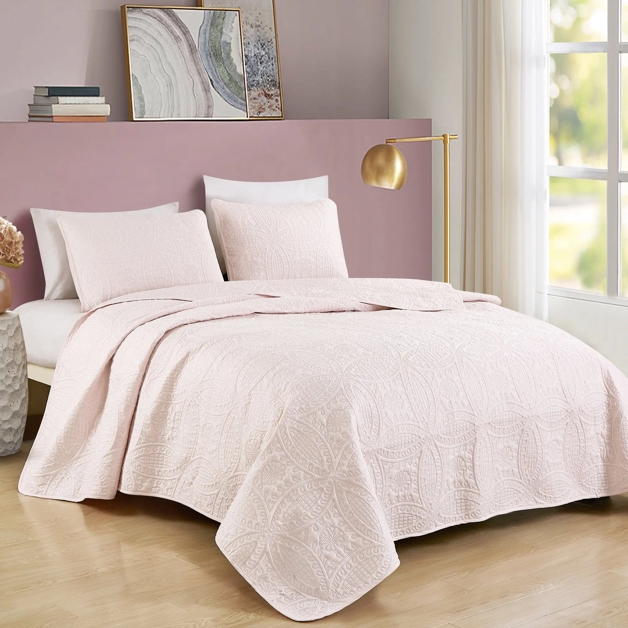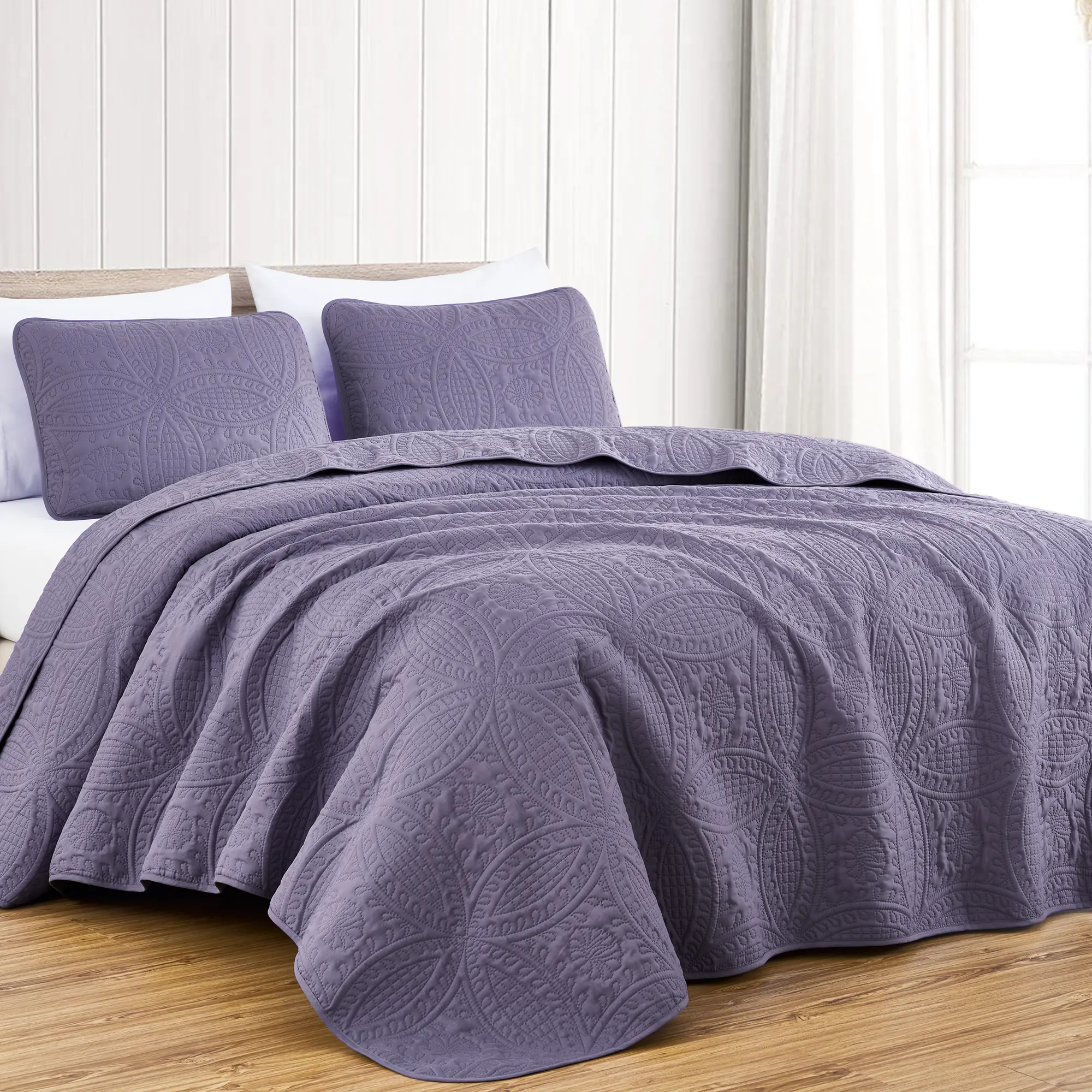 Crafted from 100% microfiber fabric, this bedspread set offers a lightweight and breathable experience, keeping you comfortable throughout the year. This lightweight bedspread is a great stand alone bed cover in warmer weathers or or a lovely layering piece as a decorative addition in cooler weathers.