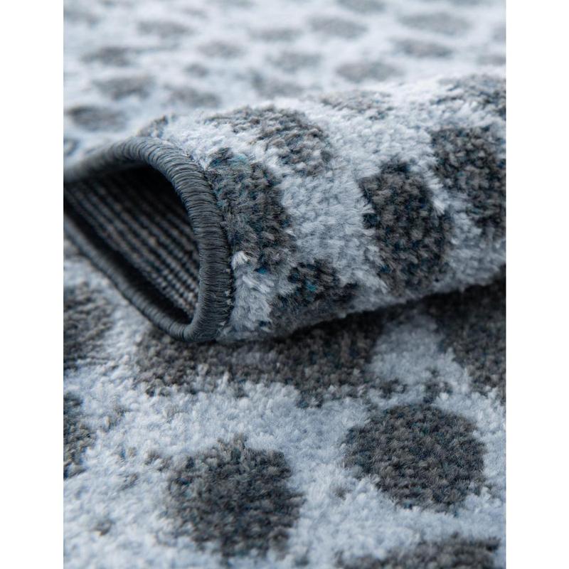 Unleash your wild side with the Kamala Washable rug! Crafted with 100% polyester, this machine-made delight features a playful, navy blue backdrop sprinkled with blue, gray, and ivory speckles. Its bold, textured pattern offers a dash of sophistication and whimsy in equal measure.