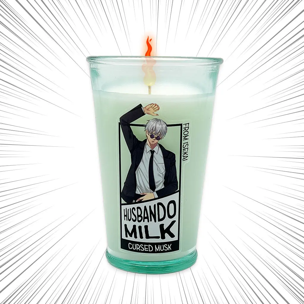 Ignite your senses with the captivating allure of Satoru Gojo through our "Husbando Milk" candle! Blending deep, dark musk, earthy driftwood, and 'limitless' lily to embody Gojo's irresistible charm that creates an atmosphere that’s both “cursed” and comforting!