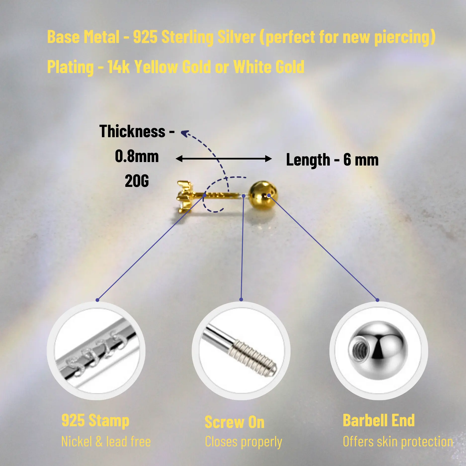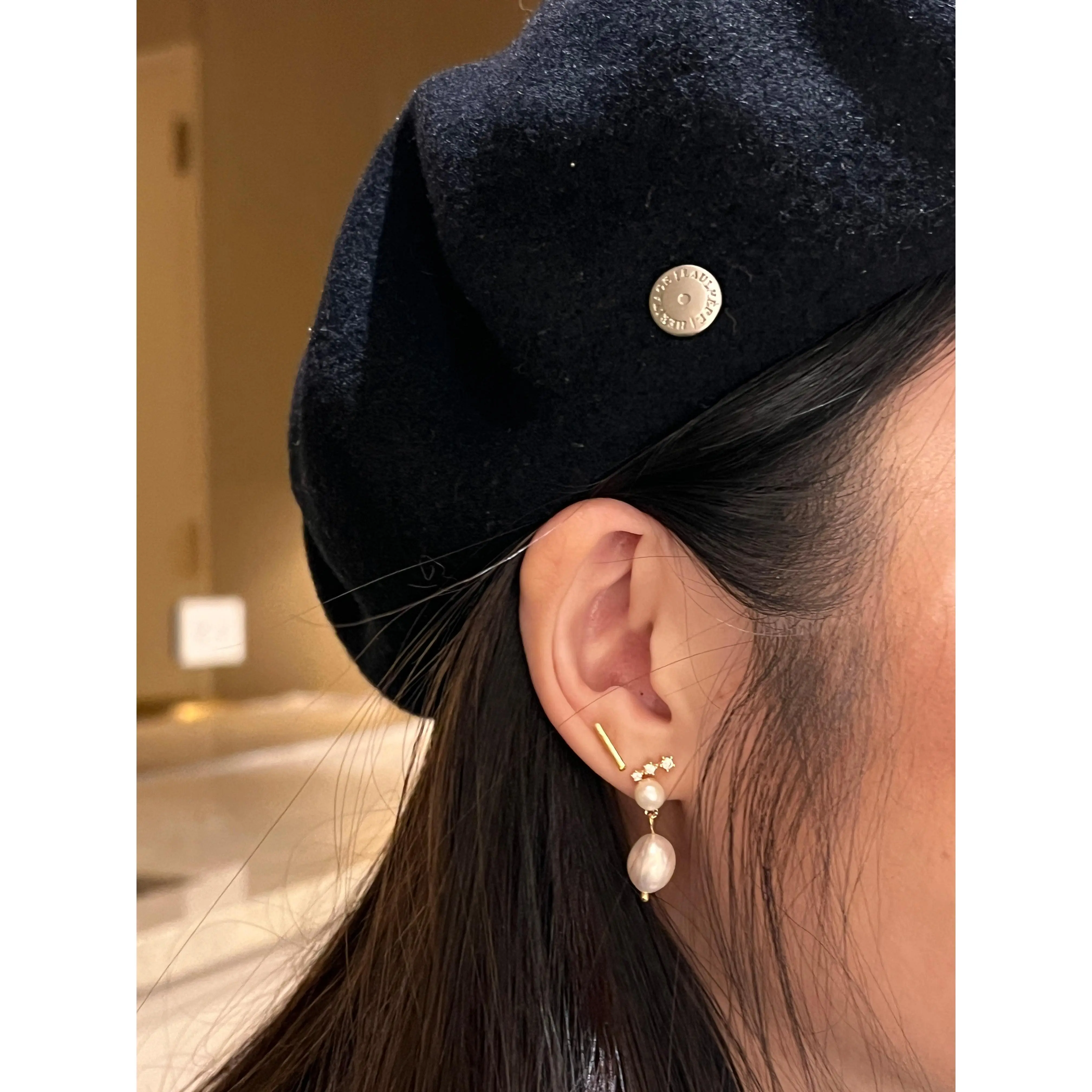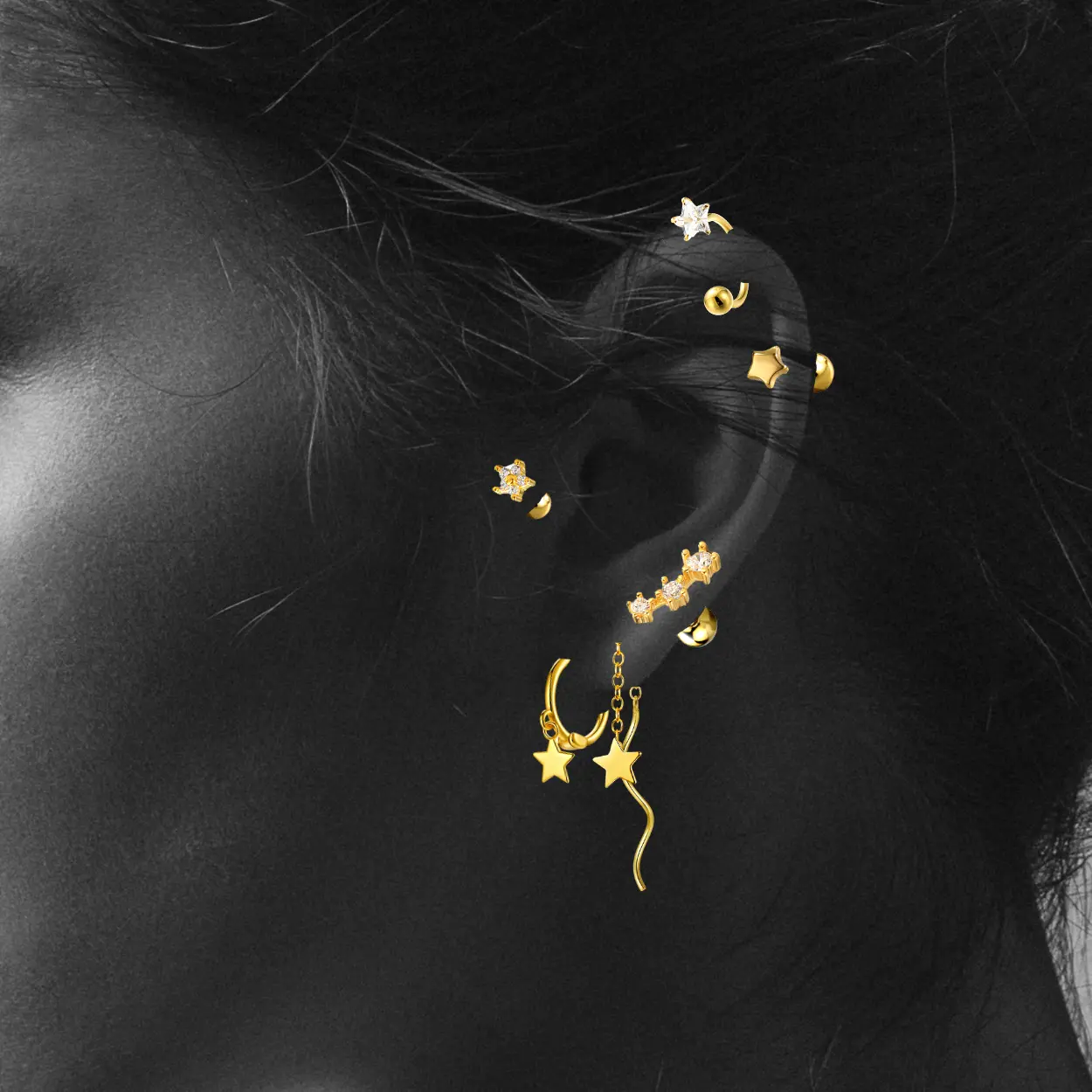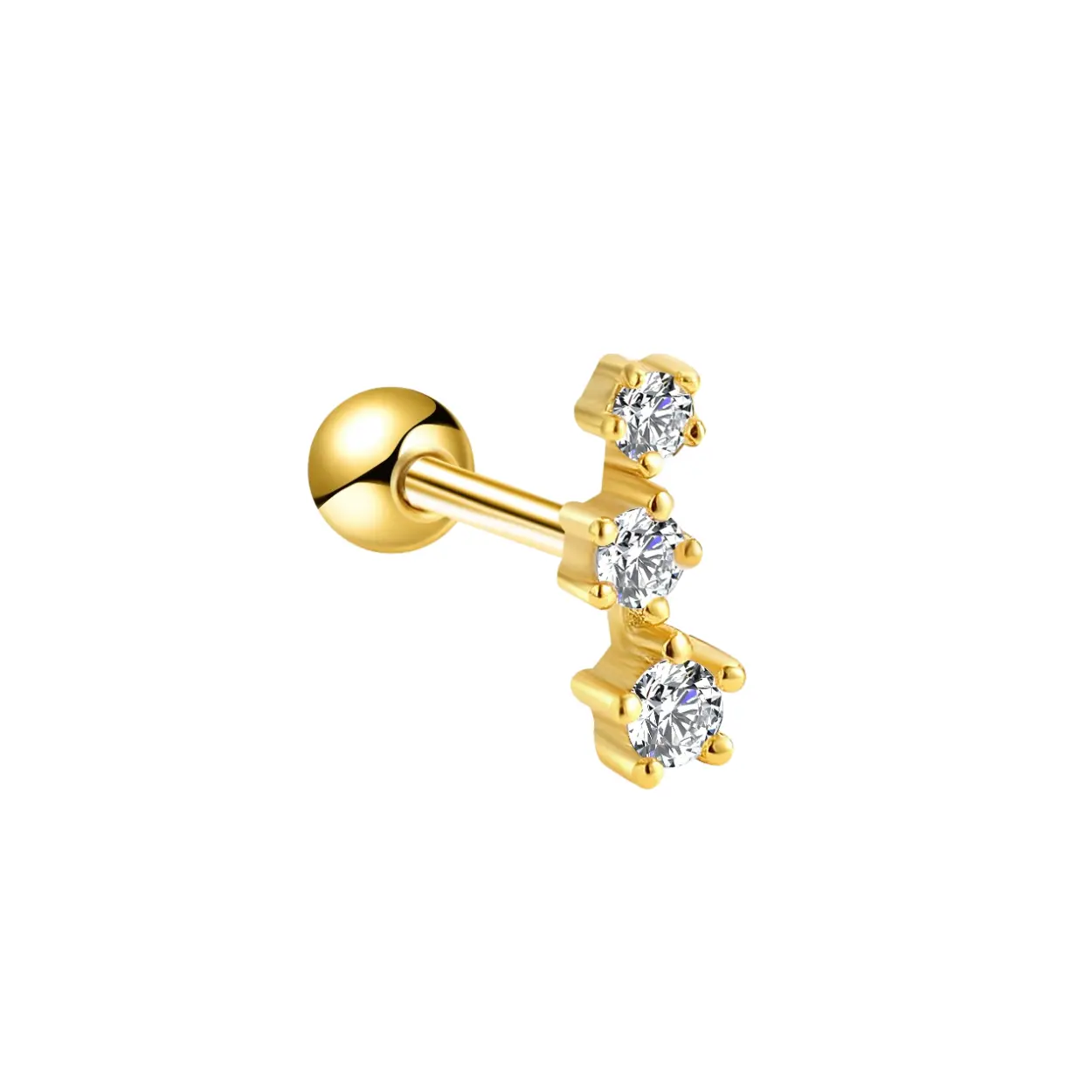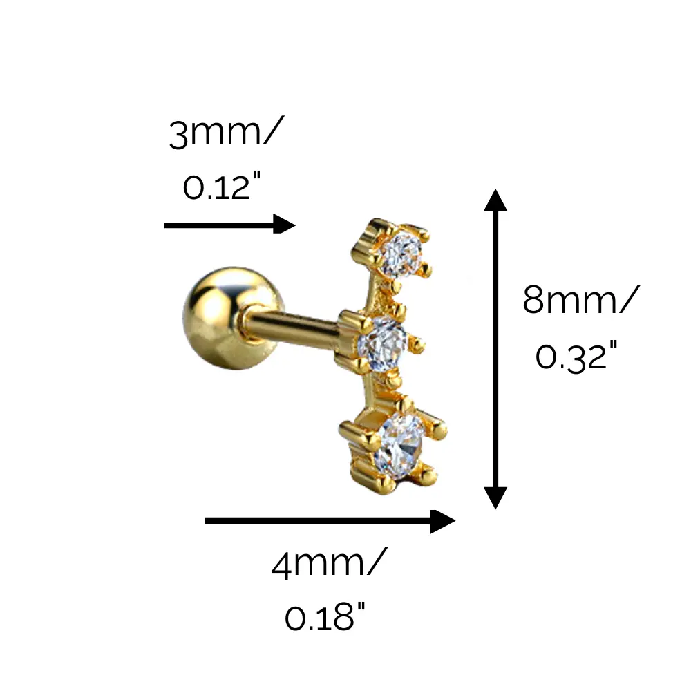 Simple dainty celestial earrings for minimalists. These "Constellation Stars" earrings are plated with 14k yellow gold and each earring is set with 3 pcs white brilliant round CZ stone. ⭐TRENDY EARRINGS DESIGN⭐- Simple earrings for minimalists. Cute silver star jewelry dainty baby jewelry with screwback earrings are comfy to wear everyday. Perfect second hole earrings for women. Cartilage piercing designed with screw back earrings hypoallergenic. ⭐SIZE⭐ - Each earring measures 3MM X 7MM, set with sparkling white cubic zirconia stones. These 20G gold earrings come with 3mm round ball screw on backings. Each order comes in ONE PAIR. ⭐SLEEPER EARRINGS⭐- Our dainty piercing jewelry is lightweight and perfect for second lobe piercing and cartilage piercing jewelry. Plated with 14K Yellow Gold on top of recycled 925 sterling silver, these aesthetic comfort earrings are nickel free and great for sensitive ears and side sleepers. ⭐JEWELRY GIFT⭐– Piercing jewelry gift for women as bestie jewelry, college girl gift ideas, best friend jewelry, college girl gift ideas, gift for teenage girl, teen jewelry, girl gifts, little girls jewelry, screw back earrings for girls, toddlers, women of all ages can enjoy them. ⭐EASY REFUNDS⭐ - FULL refund or exchange can be offered post purchase. Kindly contact if you need a customized jewelry. ⭐PROUDLY AMERICAN-OWNED ECO FRIENDLY JEWELER⭐ Cosmo Carat elegantly bridges the gap between style and safety with its diverse range of screw back earrings, meticulously designed for women, men, girls, and toddlers. Our collections, spanning from hypoallergenic screw back earrings for women and kids, to sterling silver and gold screw back earrings for girls, ensure a secure, comfortable fit for every wearer. Whether it's the delicate charm of screw back stud earrings for toddlers, the sophistication of gold screw back earrings for women, or a pair of quiet luxury minimalist screw back earrings for men, each piece embodies our commitment to quality and comfort. For those adorned with cartilage piercings, our cartilage earrings for women and cartilage piercing jewelry offer chic, secure options. Cosmo Carat's dedication to combining hypoallergenic materials with the timeless allure of screw back designs ensures that each earring is not just an accessory but a treasure, promising both safety and an effortless fashion statement for all.