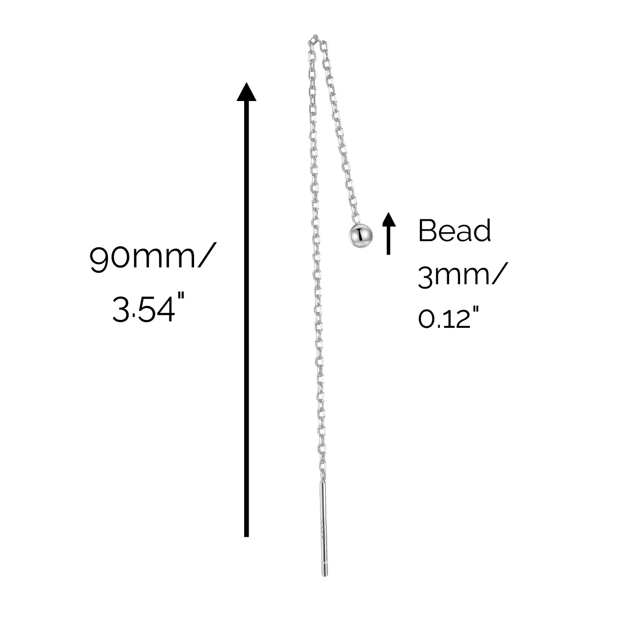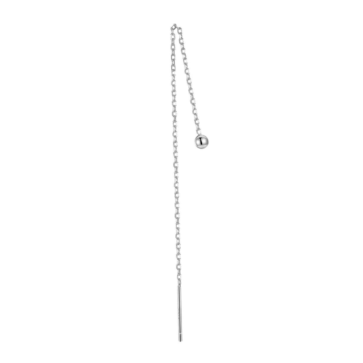 "Dancing Orb" 14K White Gold Plated Sterling Silver Hypoallergenic Ball Long Threader Earring Everyday Celestial Piercing Chain Earrings