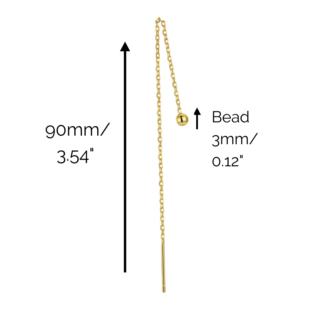 ⭐TRENDY EARRINGS DESIGN⭐ - Simple dainty gold stellar shinny ball threader earring for minimalists. ⭐SIZE⭐ - 3mm wide polished ball. Each soft threader is 90mm long. Total Weight: 0.3g.