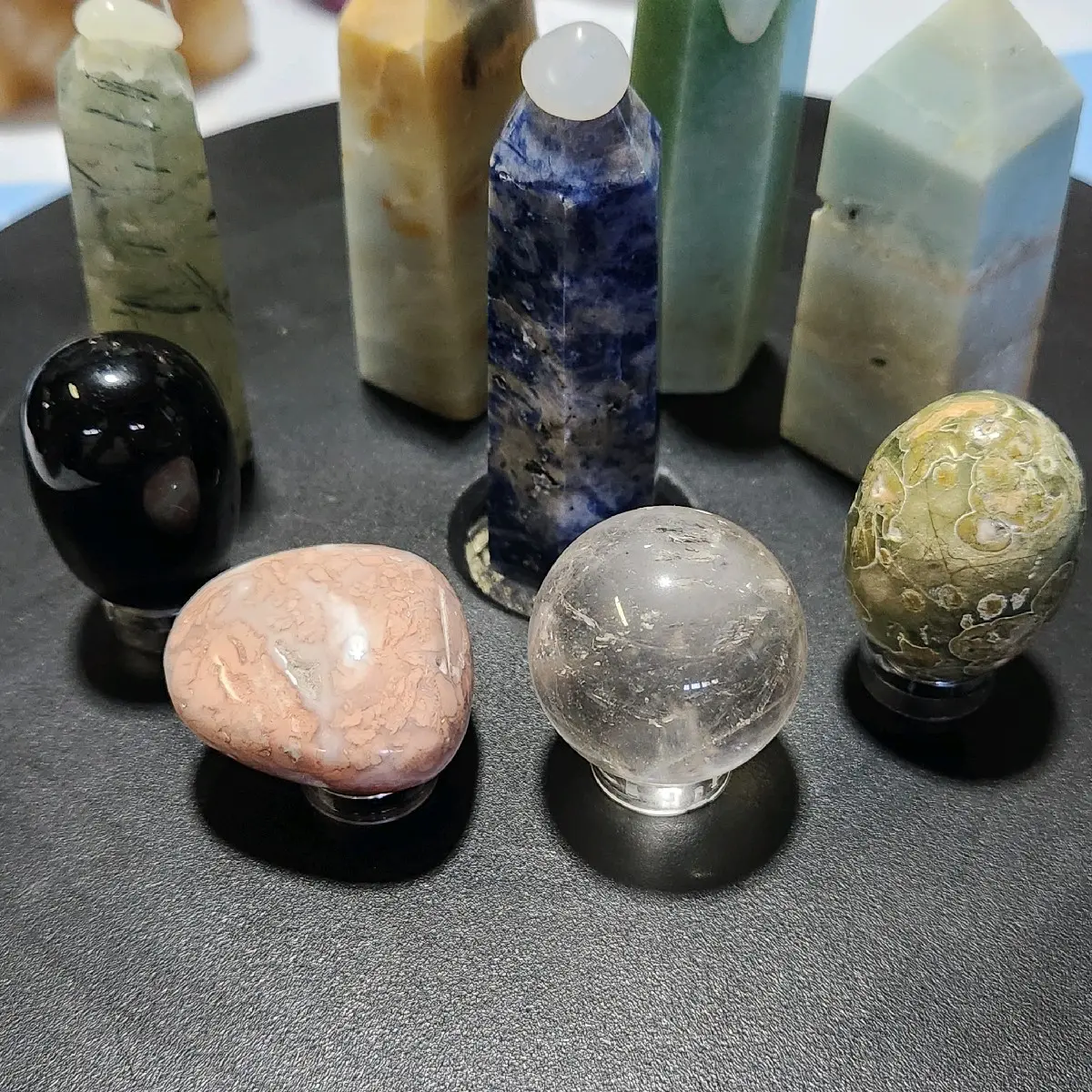 This product is a selection of quality small size spheres, carvings, freeform, towers, and more natural crystals or minerals. The seller assures that the crystals or minerals are worth more than the price. The small size spheres are perfect for those who want to carry them around easily and can be used for various purposes such as meditation, energy healing, and home decor. The carvings are intricate and can be used for decoration or as a gift. The freeform crystals or minerals are unique and can be used for decoration or as a gift. The towers are tall and can be used for decoration or as a gift. The natural crystals or minerals are believed to have healing properties and can be used for various purposes such as meditation, energy healing, and home decor.