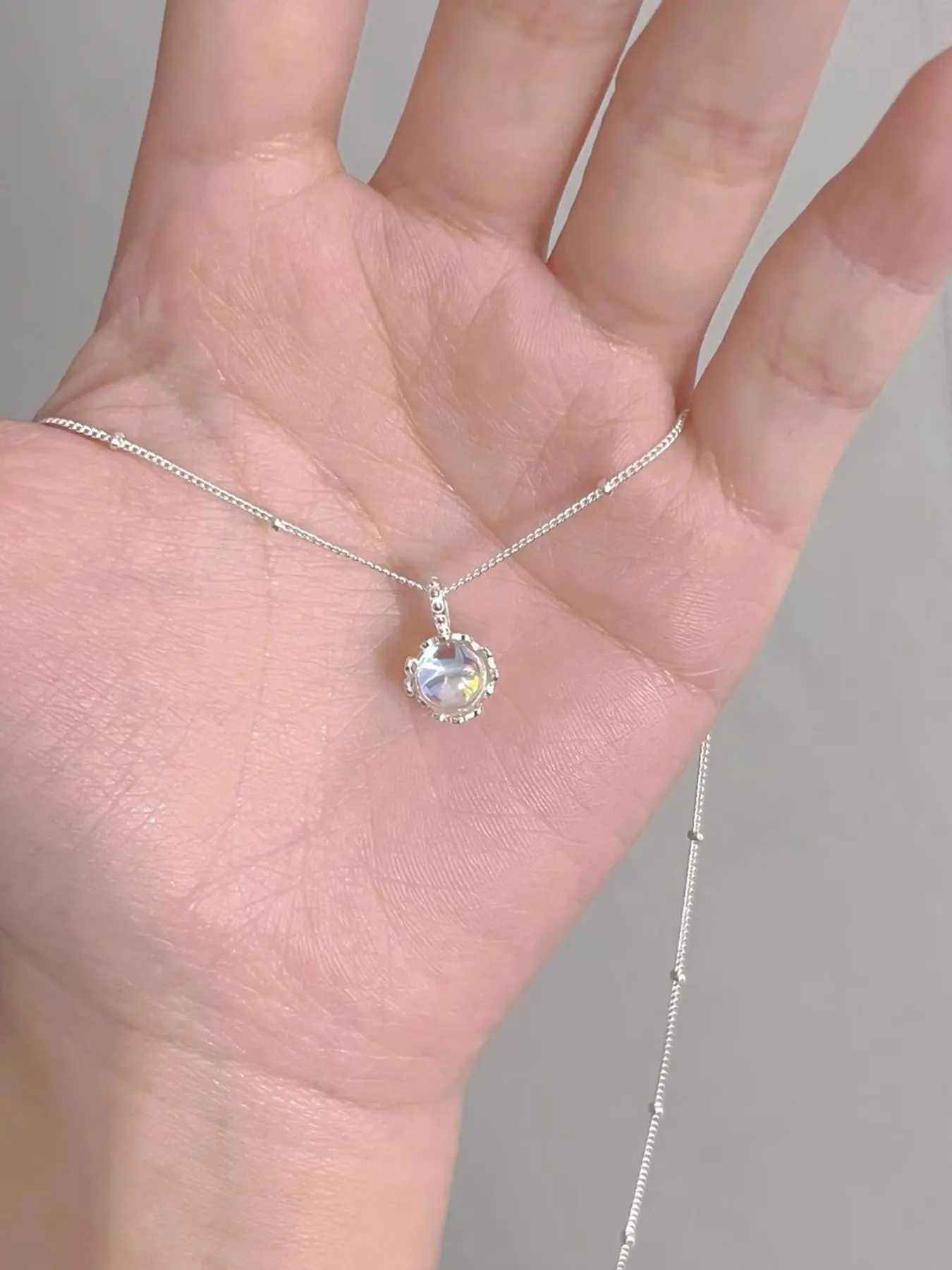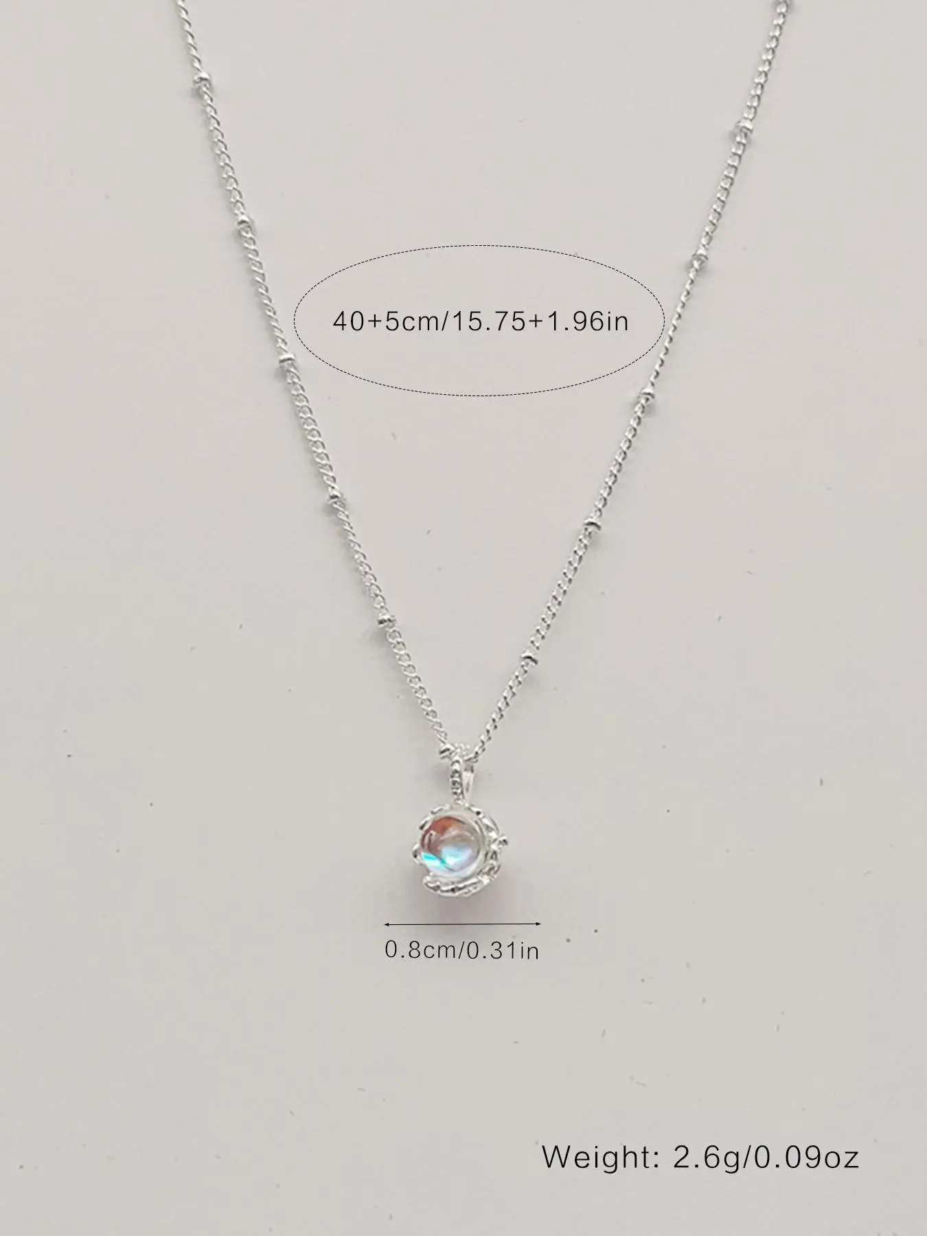 5. S925 Sterling Silver Moonstone Decor Pendant Necklace for Women, Fashion Jewelry for Party, Daily Clothing Decor, Trendy All-match & Exquisite Jewelry for Gift, Charm Necklaces