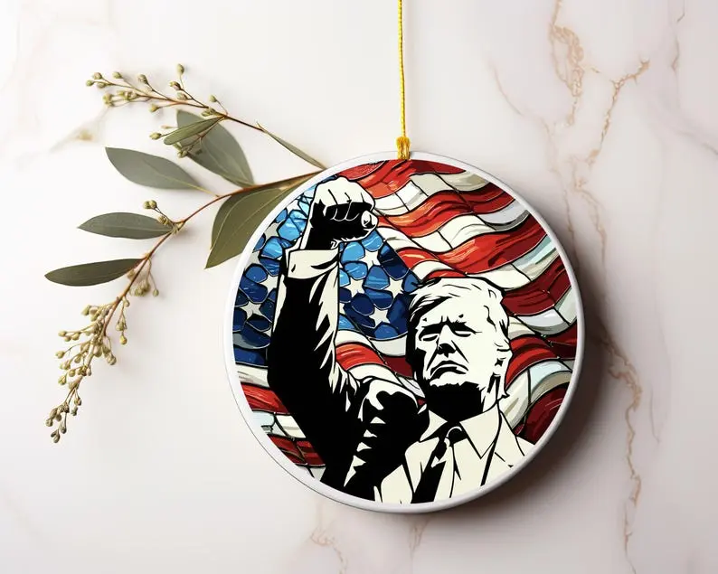 2024 Trump with Raised Fist Stained Christmas Ornament, American Pride Keepsake, American Gift Ornament 2024 Ornaments