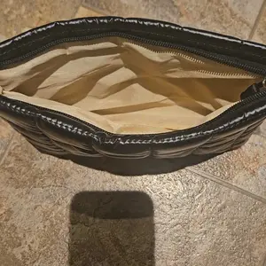I love these bags. This black one is really nice. You can hold your make up or you can hold your phone cords or whatever you need to have to take along with you.