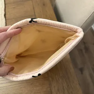It’s a cute cosmetic bag. Not that big! Like the material design, very soft. Took pictures with a measuring tape, so you can get an idea.😬 Happy with my purchase.