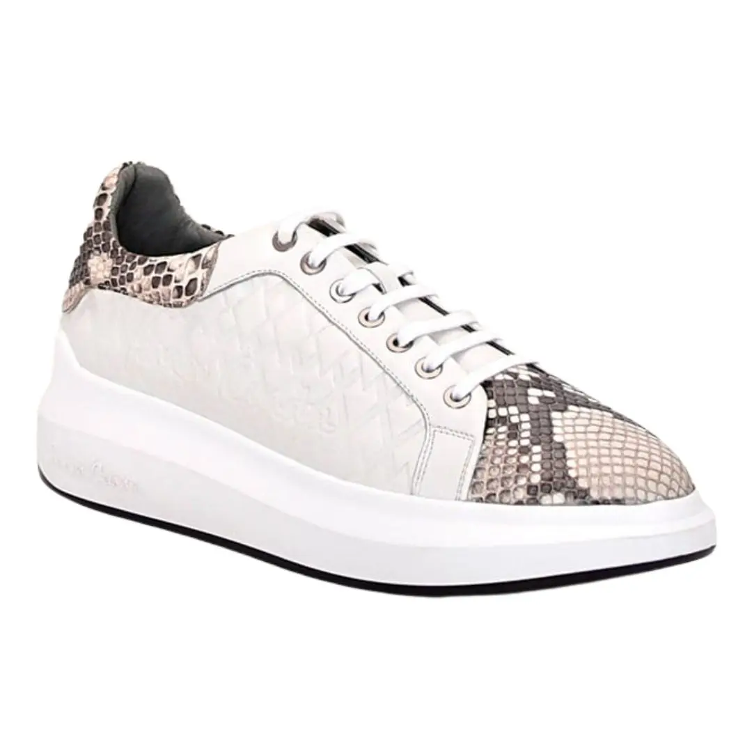 Introducing our exquisite Python White Leather Sneakers, carefully crafted for the discerning individual. These sneakers are true proof to the fusion of artistry, quality, and timeless style. Crafted from genuine python brown leather, these sneakers exude luxury and sophistication.