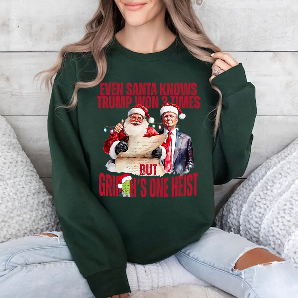 Even Santa Knows Trump won 3 times, Trump for Christmas Shirt, Sweatshirts, Hoodie Unisex 100% Cotton
