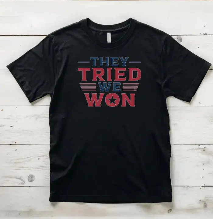In essence, this t-shirt is designed to make a clear, bold statement, combining a political message with simple, eye-catching design elements that resonate with Trump’s supporters.