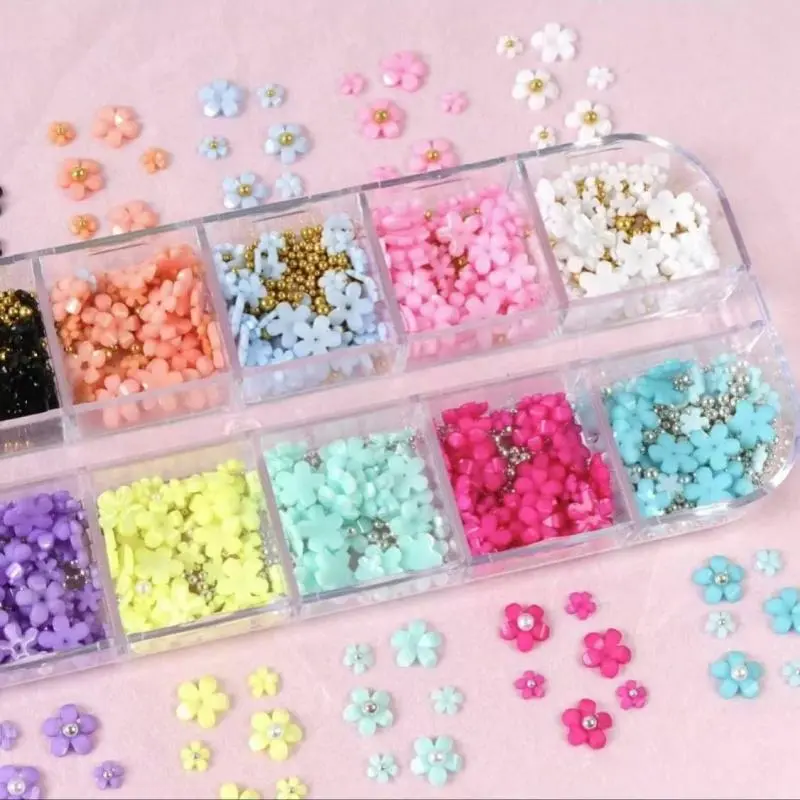 4. 12 Color Flower Shaped Nail Art Decoration, 1 Box DIY Nail Accessories for Nail Art Decoration & DIY Crafts, Nail Decoration Kit for Women & Girls