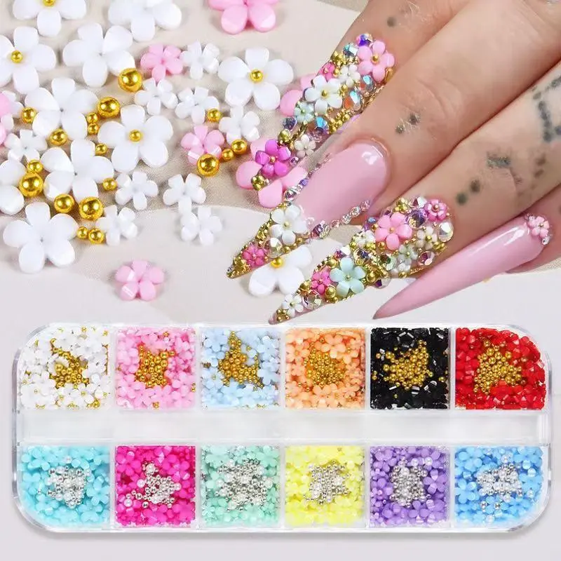 12 Color Flower Shaped Nail Art Decoration, 1 Box DIY Nail Accessories for Nail Art Decoration & DIY Crafts, Nail Decoration Kit for Women & Girls