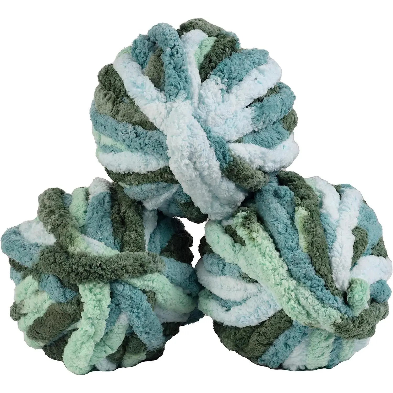 iDIY Chunky Yarn 3 Pack (24 Yards Each Skein) - Tie Dye (Mint, Teal, Green) - Fluffy Chenille Yarn Perfect for Soft Throw and Baby Blankets
