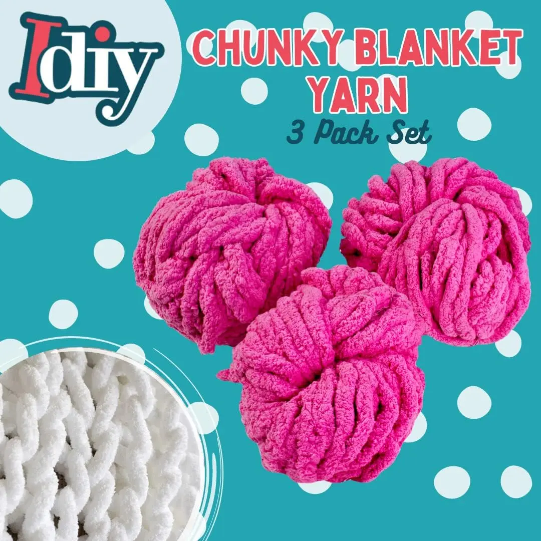The iDIY 3 pack of soft, chunky yarn contains a total of 72 yards, with recommended skein quantities for various blanket sizes. It is perfect for DIY craft projects like cozy knit blankets, cushions, rugs, scarves, hats, and more, and can be used for crocheting, macramé, weaving, and decoration. The lightweight and fluffy chenille yarn is suitable for crafters of all ages, offering a variety of vibrant colors to create personalized gifts for special occasions.