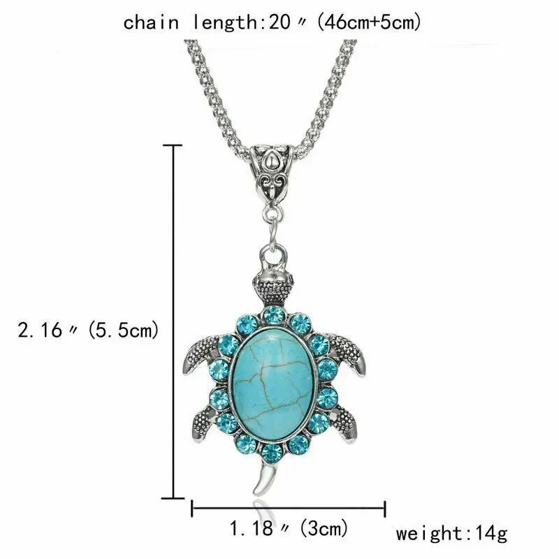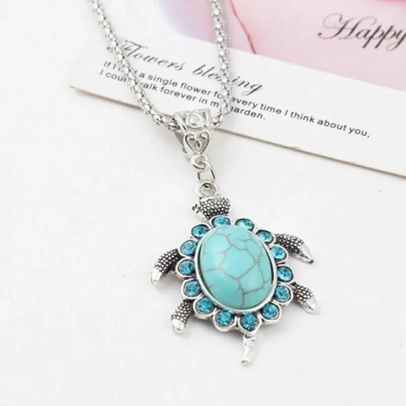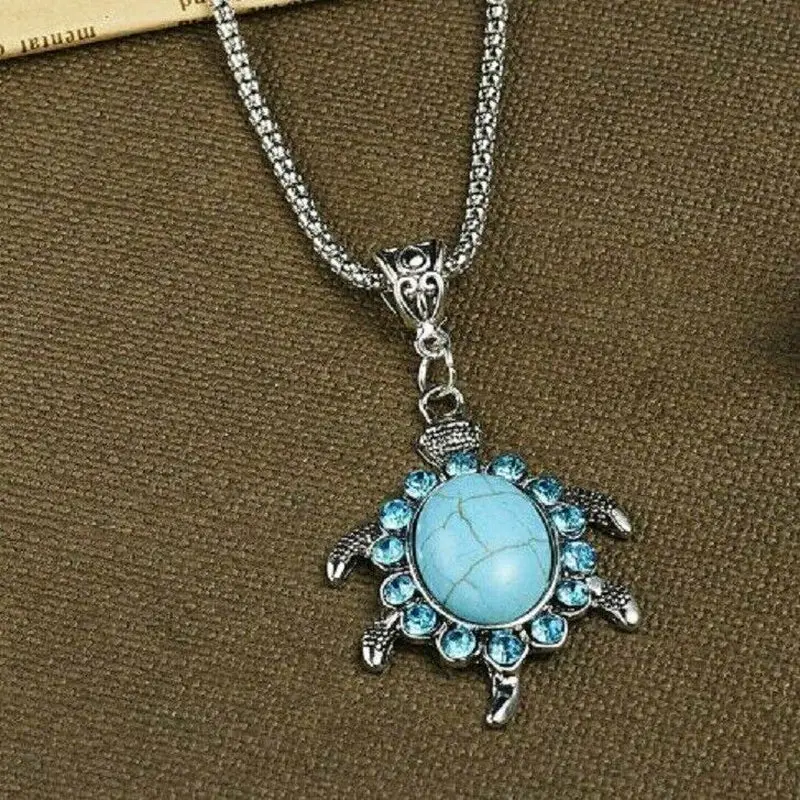 Boho 925 Sterling Silver Sea Turtle Charms Vintage Turquoise Pendant Necklace Natural Burma