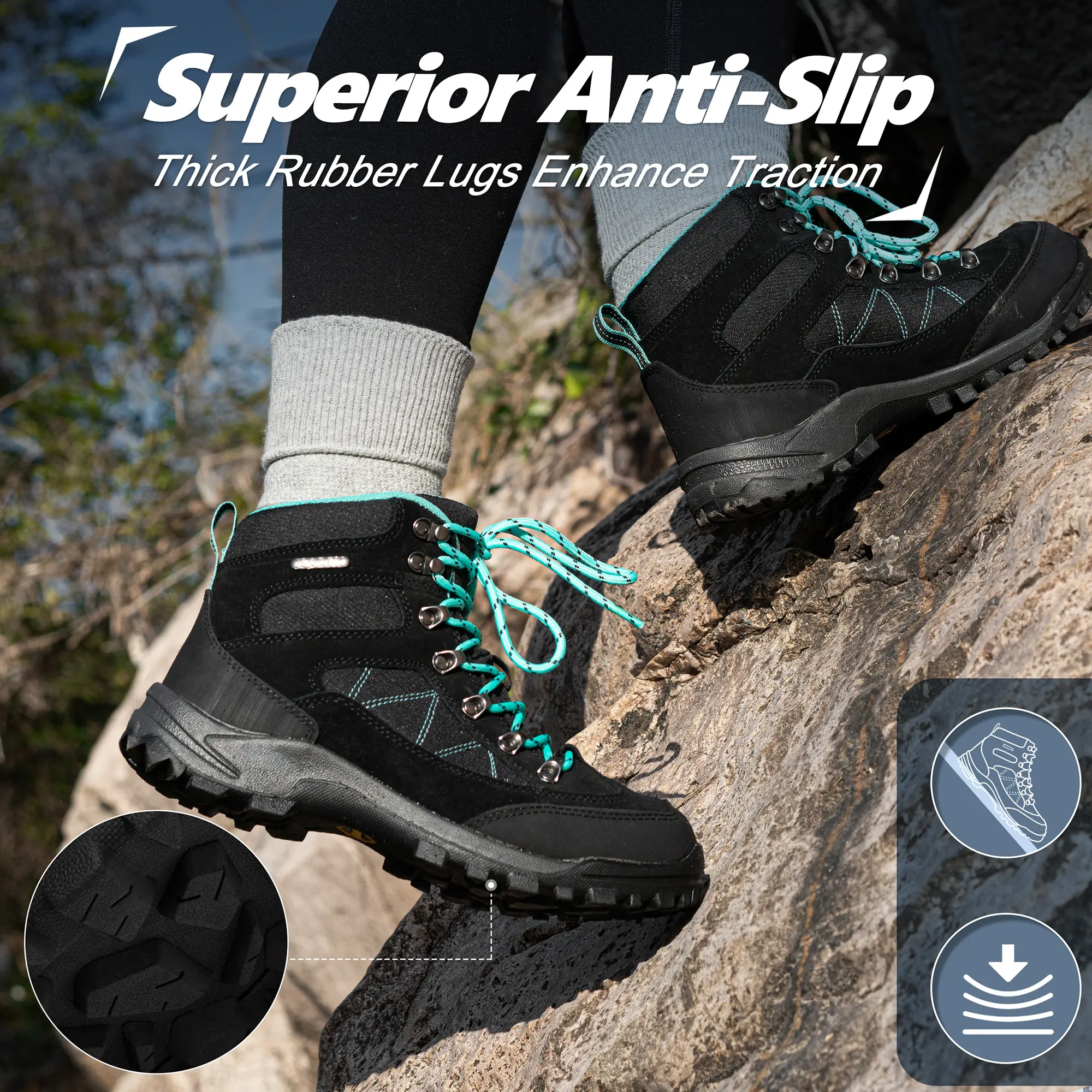 ·SECURE FIT - This womens waterproof hiking boots feature a lace-up closure, which provides a tighter fit to lock in your heel and secure your ankle in place.