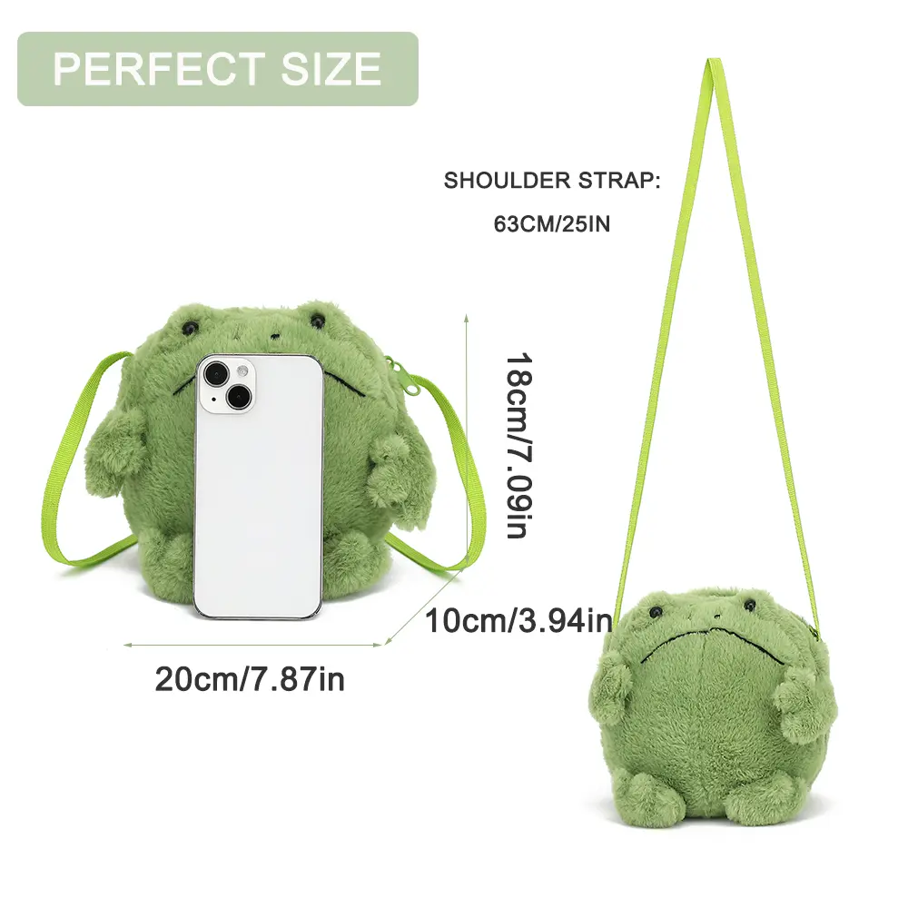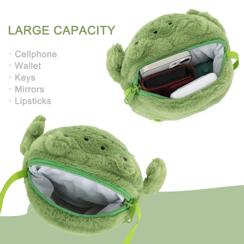 ·Experience the comfort of our frog plush crossbody bag, which is made of high quality fluffy plush that is soft to the touch and durable for everyday use.