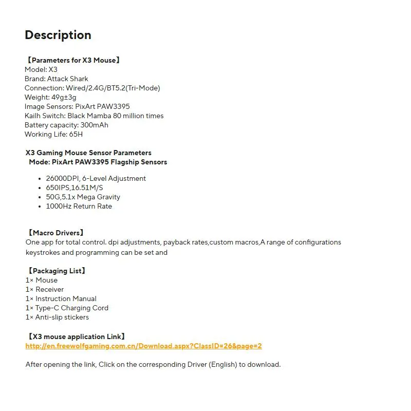 ATTACK SHARK X3 Wireless Mouse with Anti-slip Sticker, 2.4G Tri-mode Connection Gaming Mouse, 26000dpi 650IPS Lightweight Macro Gaming Mouse for PC Laptop