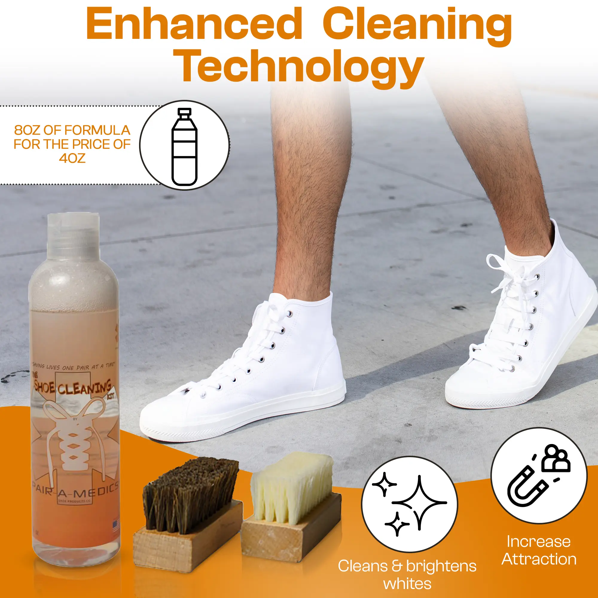 ·[The Complete Package]: Our Shoe Cleaner Kit is a Perfect Package Consisting of our 8 oz Shoe Cleaner Solution, microfiber towel, 2 variations of Brushes and a bowl for making solution. Its can clean up to 50 Pairs of Shoes.