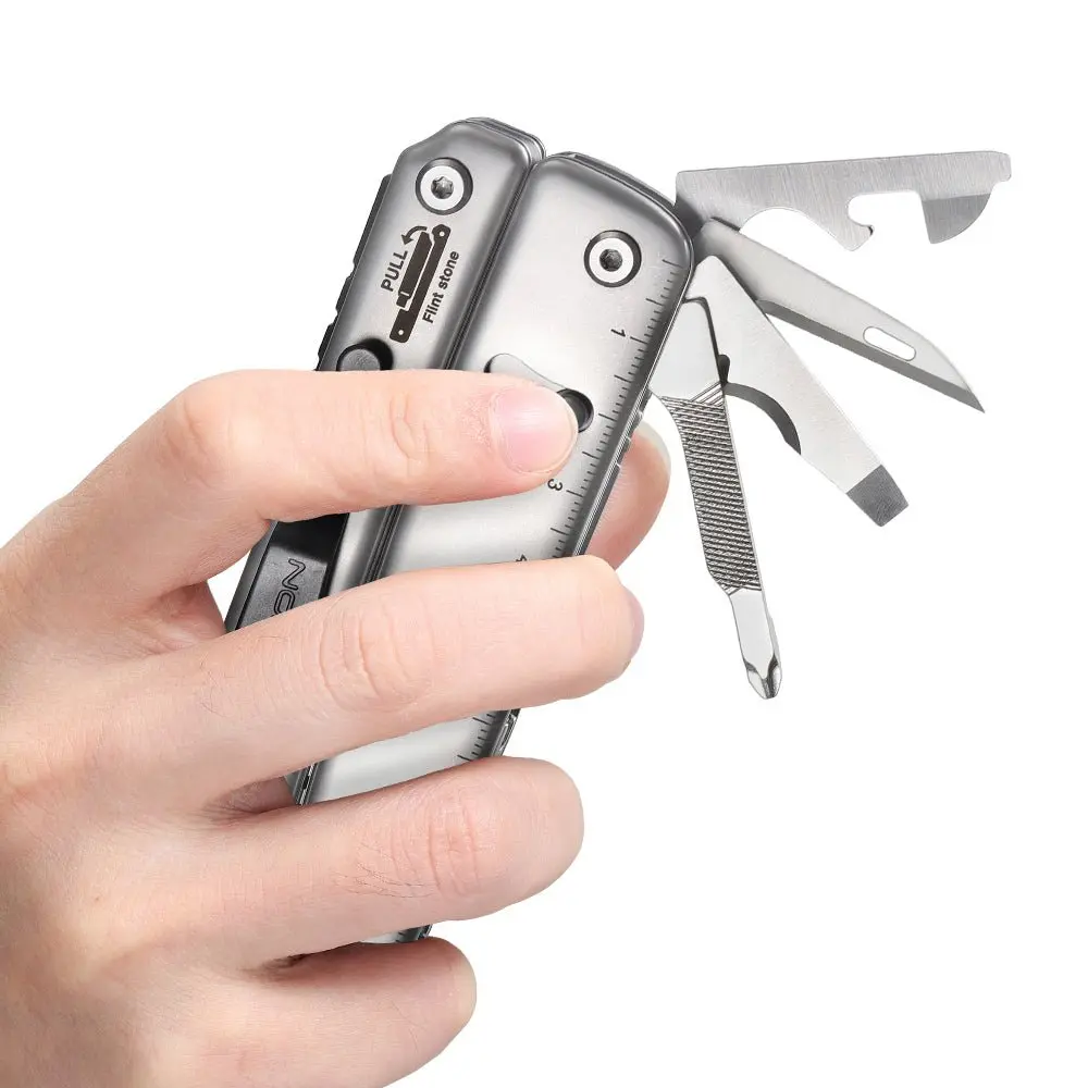 Introducing the S803E Flash Elite Multi-tool, with an upgrade D2 steel blade, your ultimate everyday carry (EDC) companion designed for the modern adventurer. With integrated pliers, a razor-sharp knife, a convenient can opener, a versatile screwdriver, and even a fire starter, the Flash is a powerhouse of functionality. Crafted for convenience and compactness, it's the perfect tool for tackling daily challenges and unexpected situations.