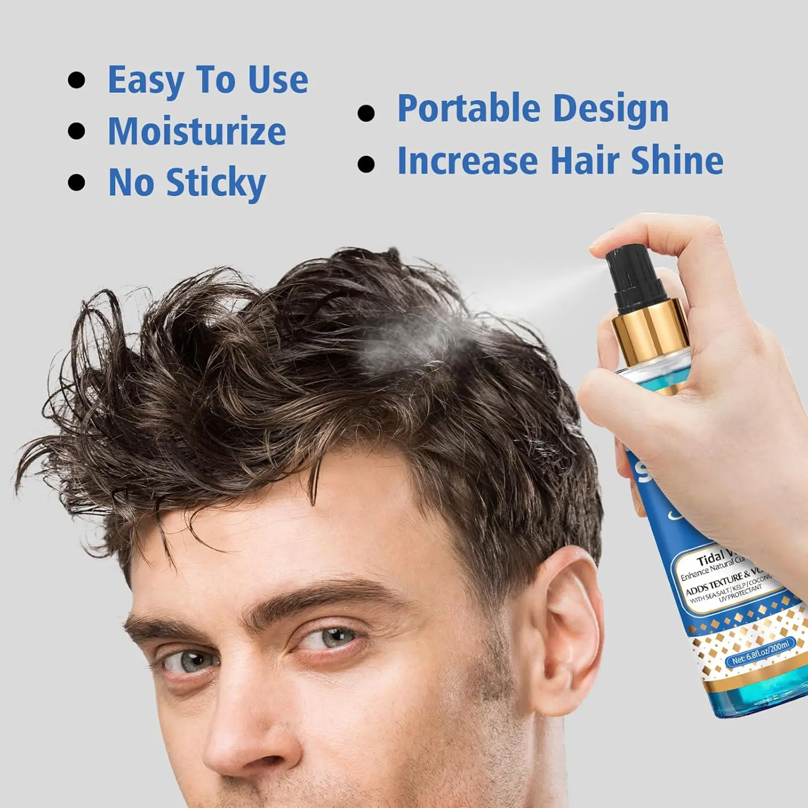 ·Beach-Inspired Texture: Transform your locks into effortlessly tousled, beachy waves with our sea salt spray for hair men. Infused with natural sea salt minerals, it mimics the texture and volume you get from a day at the beach.