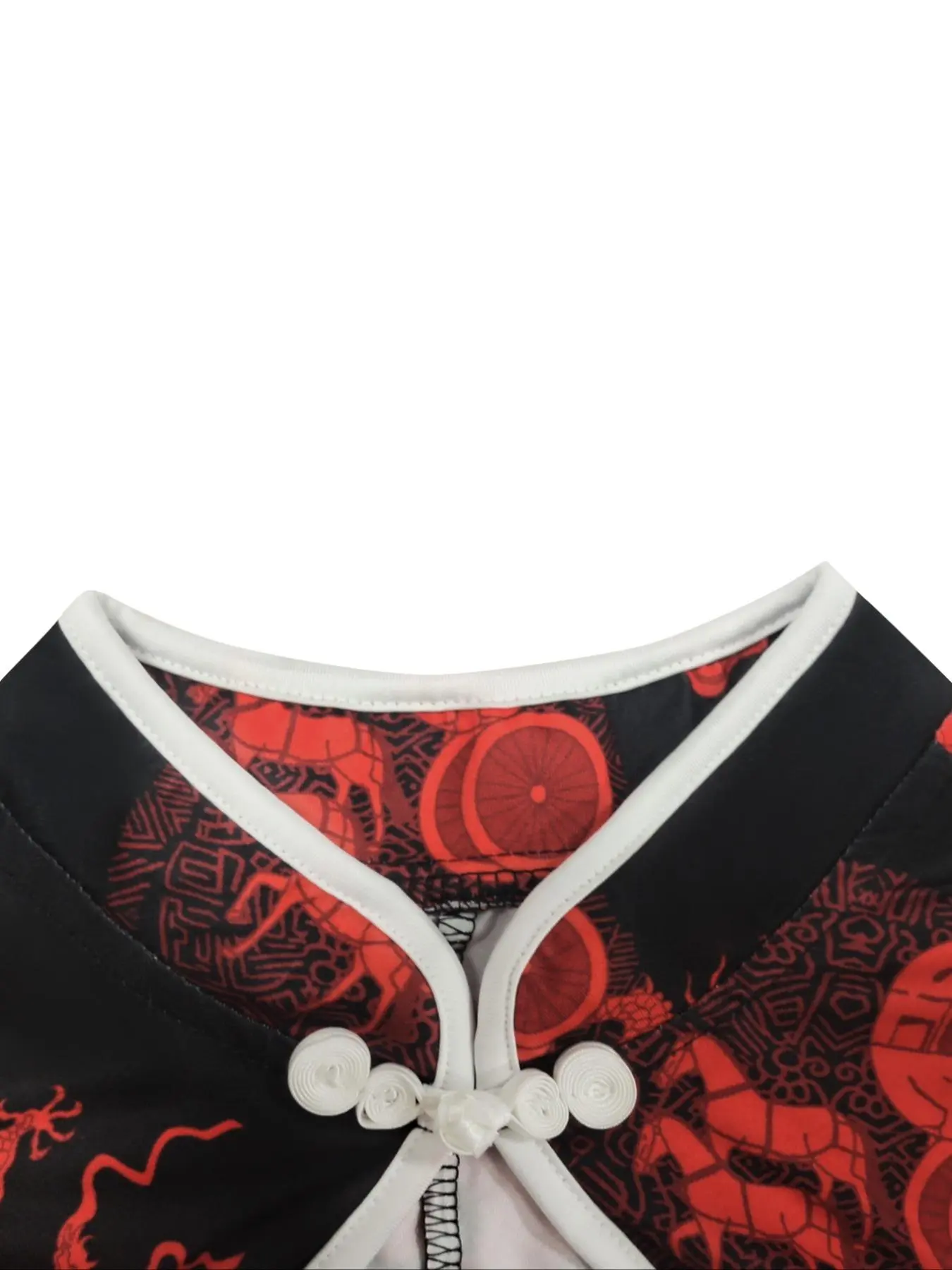【plus Size】 Ethnic Pattern Mandarin Collar Bodycon Dress, Elegant Short Sleeve Short Dress for Party Holiday Wedding Guest, Women's Clothes for All Seasons, Formal Dress Hides Tummy, Shortsleeve Womenswear