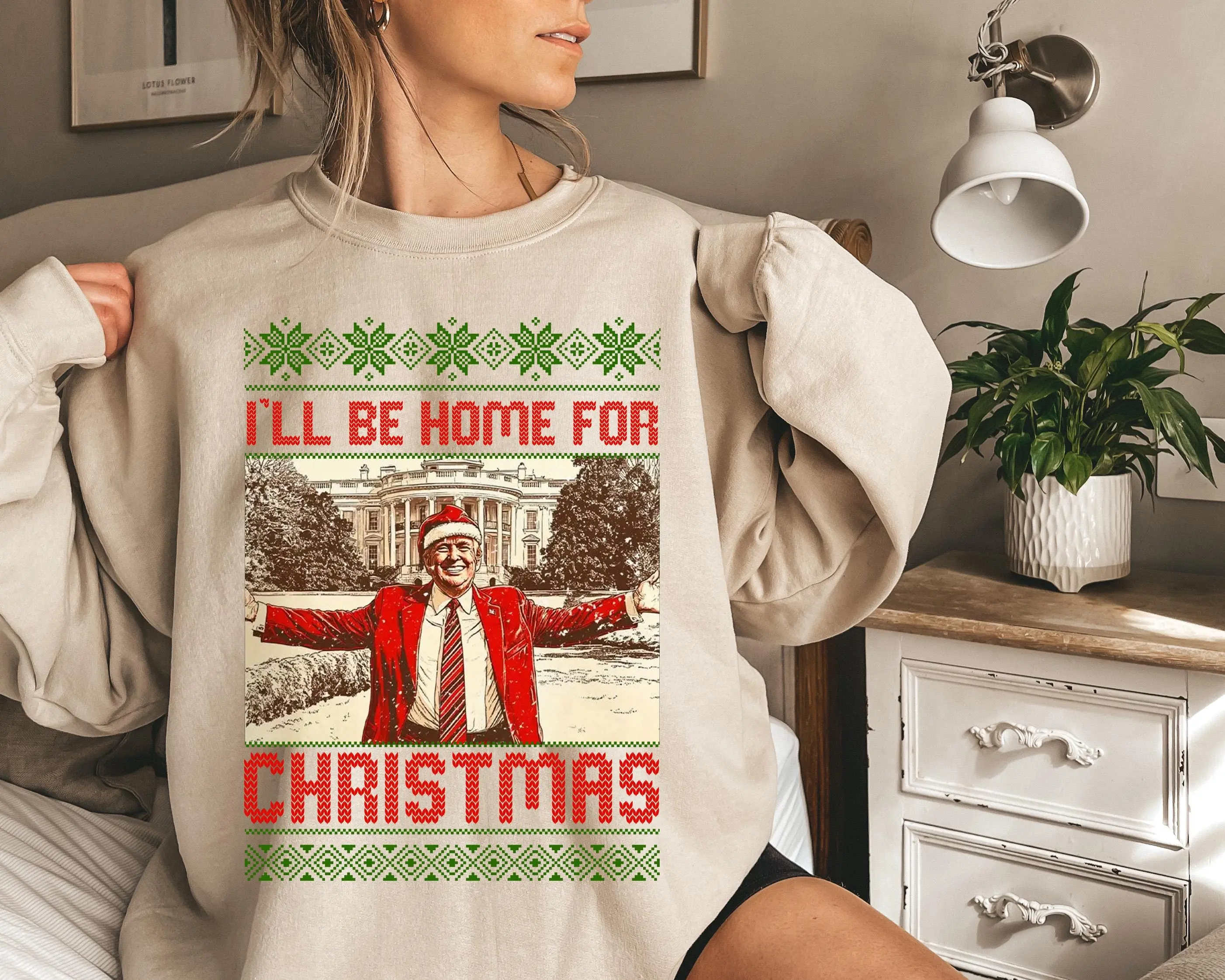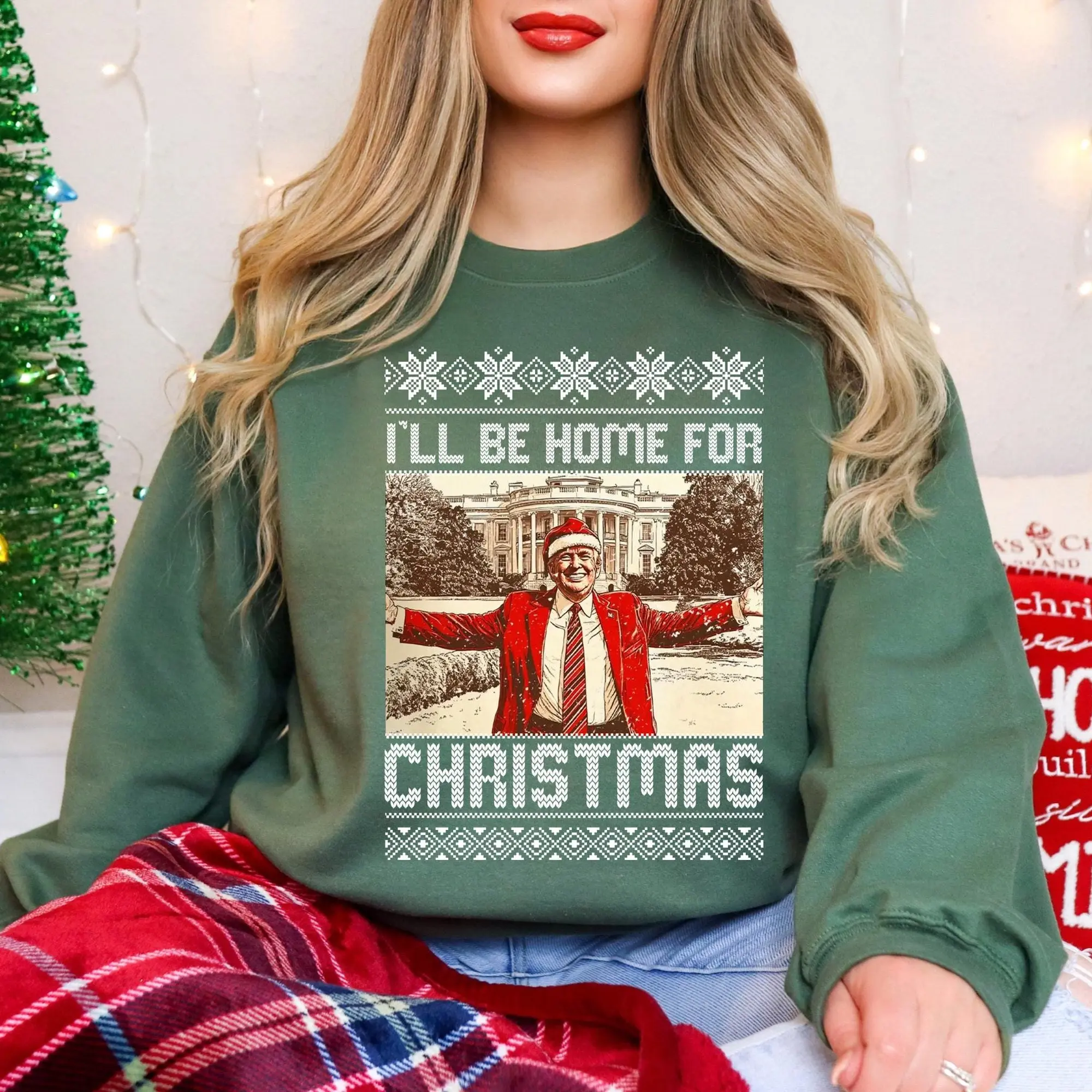 5. President Trump I'll Be Home for Christmas Sweatshirt, Humorous Trump Christmas T-Shirt, Daddy's Home Shirt